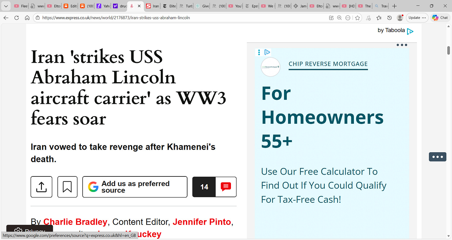 USS Abraham Lincoln aircraft carrier strike by Iran.