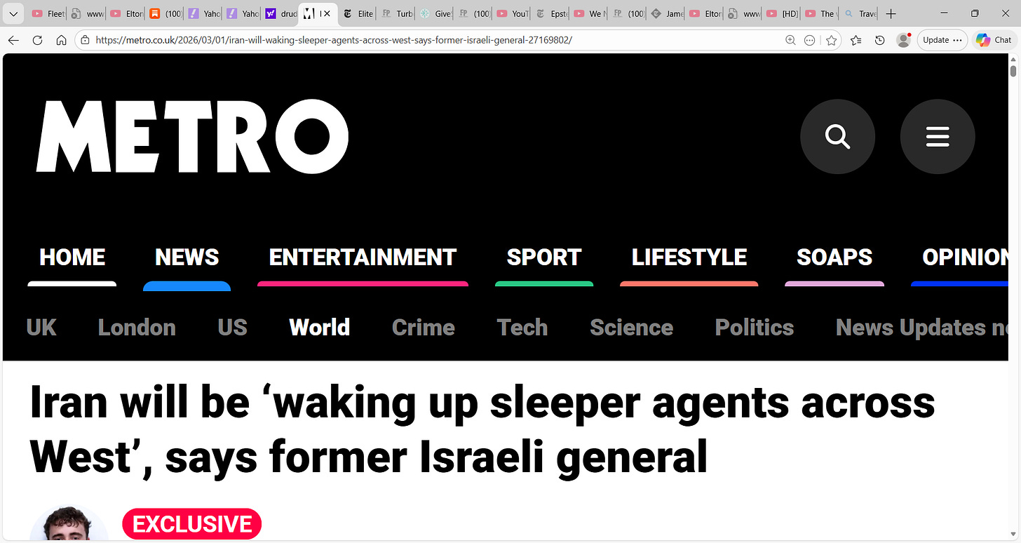 Back to this troubling sleeper cell issue and this is real and we have to be aware of our surroundings and be prepared to kill if life is at risk…be legally armed, 2nd amendment, this is the effect of the Iran attack…our risk has increased substantially, be careful:
