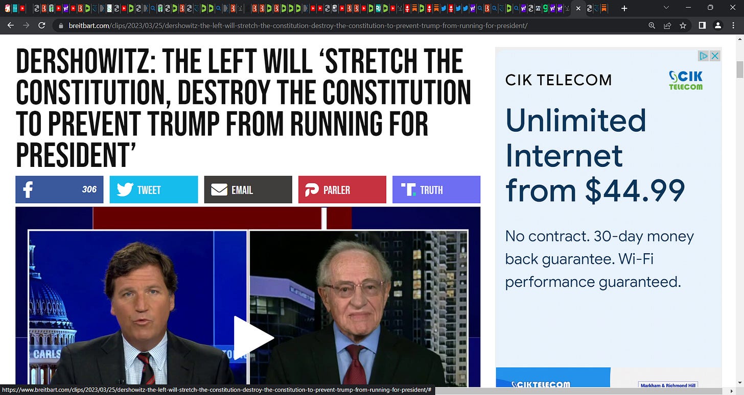 Dershowitz: 'The Left Will ‘Stretch the Constitution, Destroy the Constitution to Prevent Trump from Running for President’; bingo Alan, bingo, & so will some RINOs & even republicans