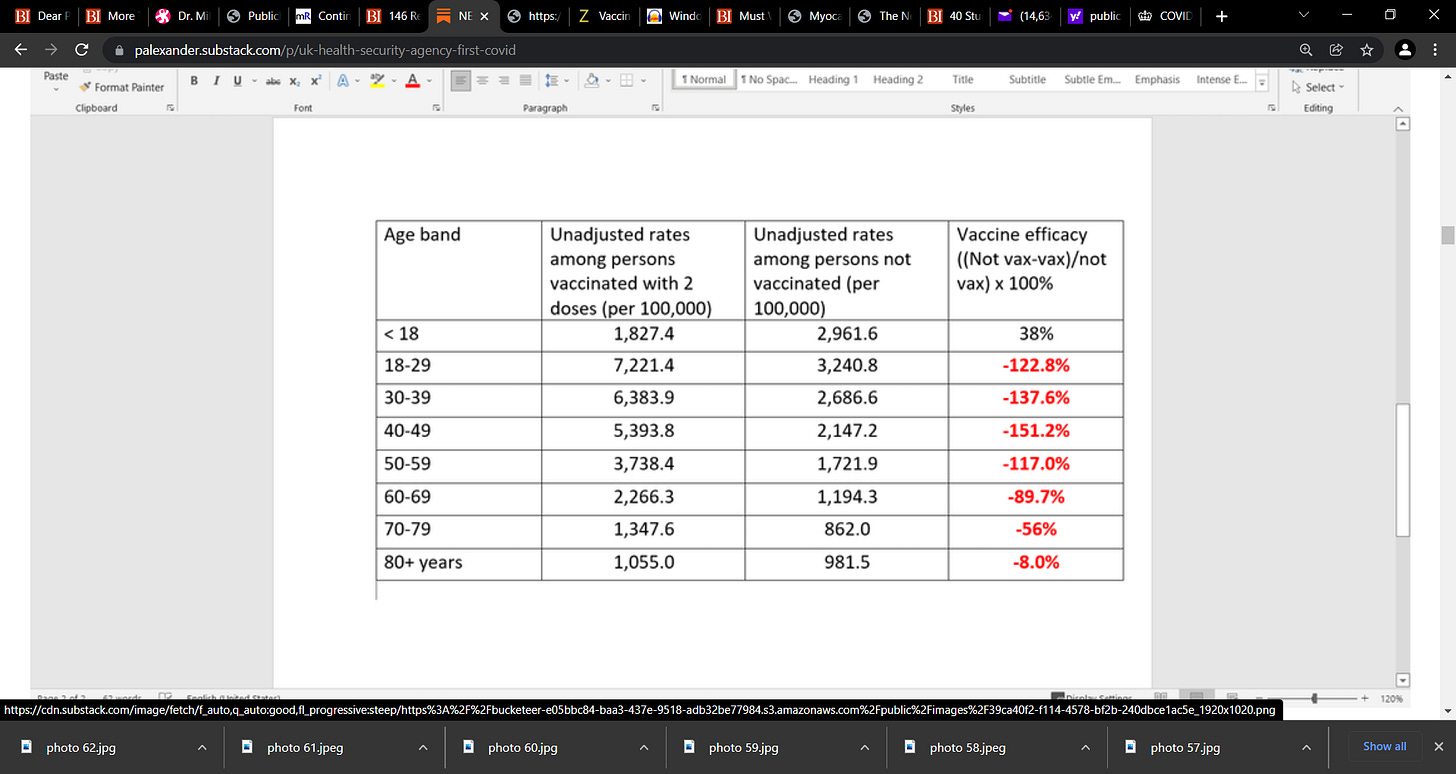 Negative efficacy 1st week UK data, devastating across the age groups: