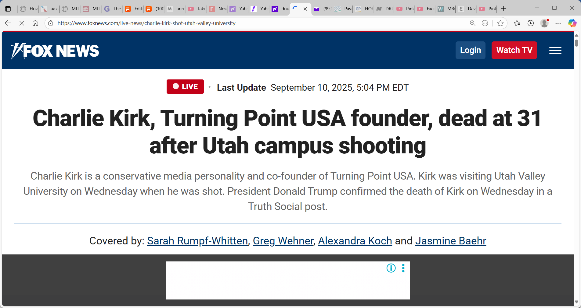 Charlie Kirk, Turning Point USA founder, dead at 31 after Utah campus shooting
