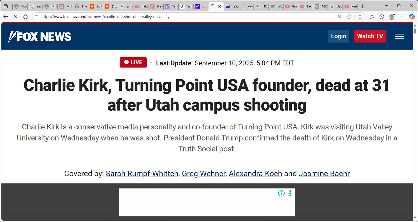 DEVASTATING breaking news, Charlie Kirk, Turning point USA has been shot dead, assassinated! This is sad terrible news & POTUS Trump has confirmed in UTAH! We mourn but this is a different USA today
