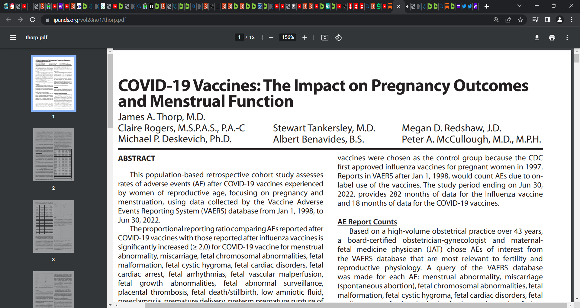 DEVASTATING findings by Dr. James Thorp: "COVID-19 Vaccines: The Impact on Pregnancy Outcomes and Menstrual Function"; COVID injections are associated with a significant increase in adverse effects