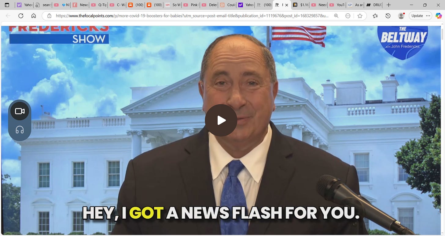 Devastating for Makary of FDA, HHS, NIH, CDC etc. & Malone, Bourla, Bancel Pfizer Moderna et al. all approve of more mRNA vaccine for infants as young as 6 months? Babies? McCullough & John Fredericks