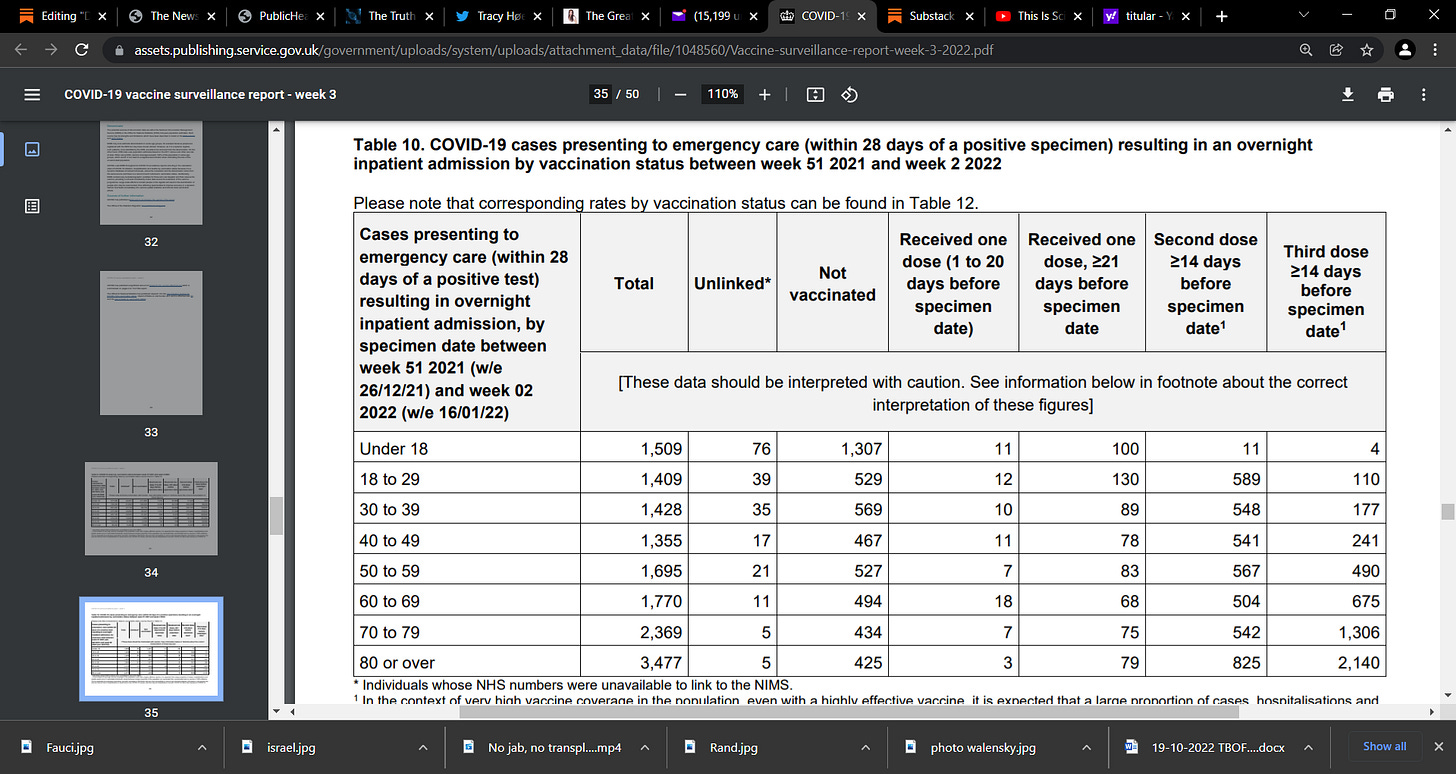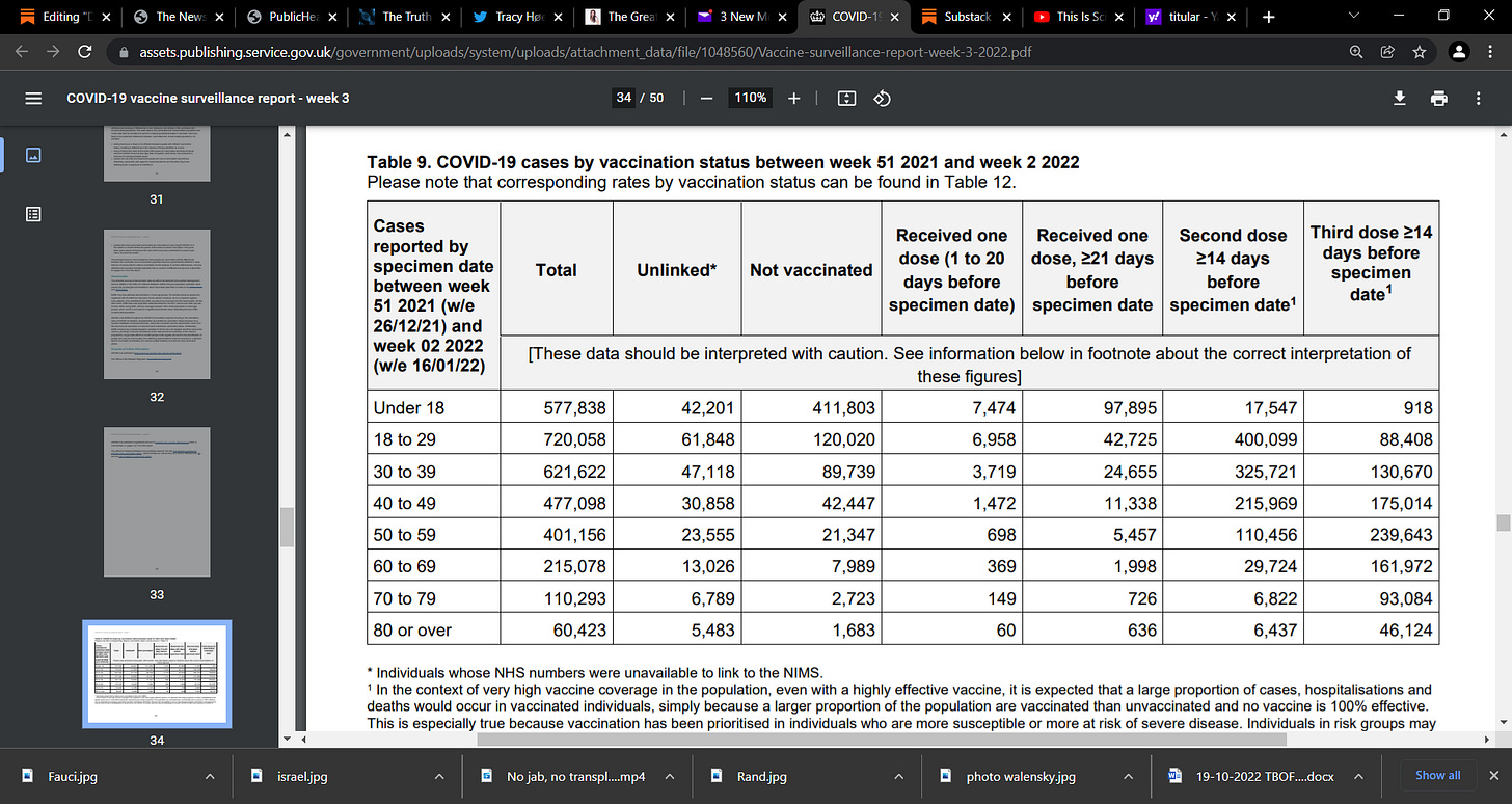 NEGATIVE EFFICACY, DEVASTATING week 3 UK British PHE report today: COVID-19 vaccine surveillance report Week 3, 20 January 2022; what do we see? TROUBLE abounds, see table 12, and yes, unadjusted