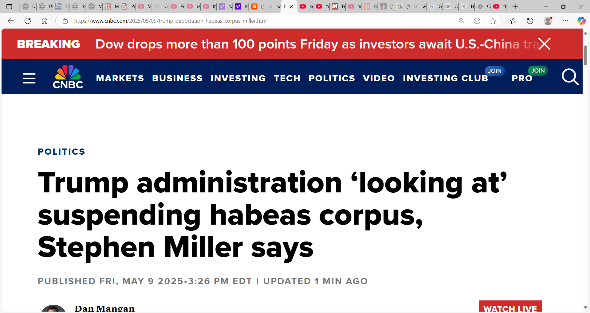Developing: "White House deputy chief of staff for policy Stephen Miller said Friday that the Trump administration is “actively looking at” suspending the writ of habeas corpus, which is the right to