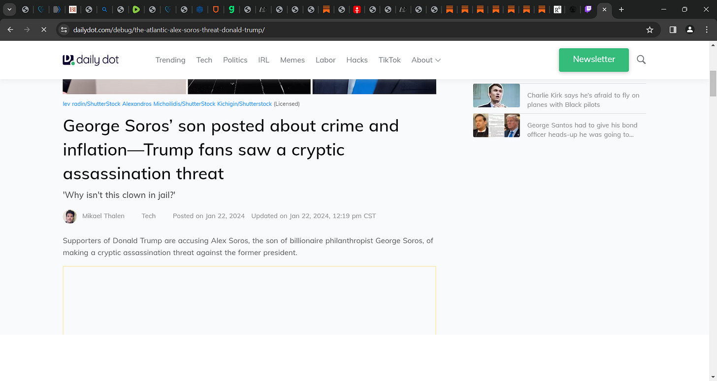 Did Alex Soros, George Soros's son really threaten POTUS Trump with death? assassination? hhhmmm, what say you? Is the far right a bit drunk, a bridge too far? What say you? It could be a veiled