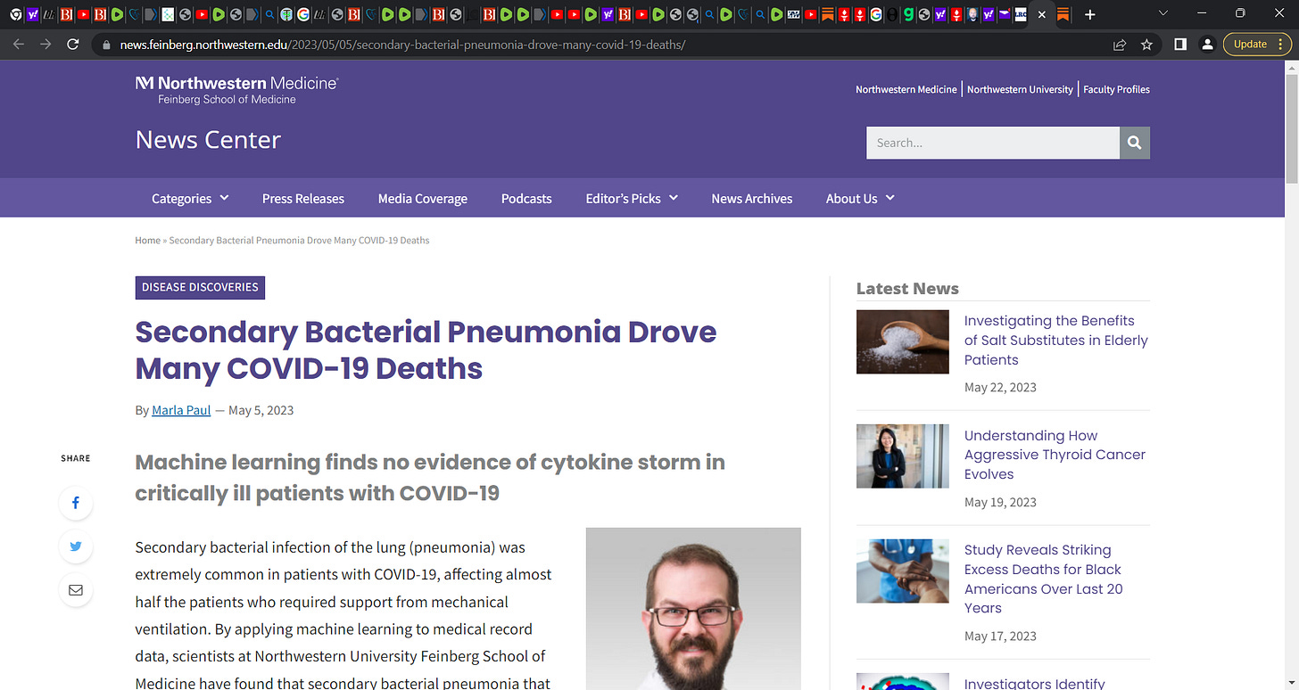 Did bacterial pneumonia kill most persons with advanced COVID infection/disease? Seems YES, Bacterial infections may even exceed death rates from viral infection itself; evidence of no cytokine storm?