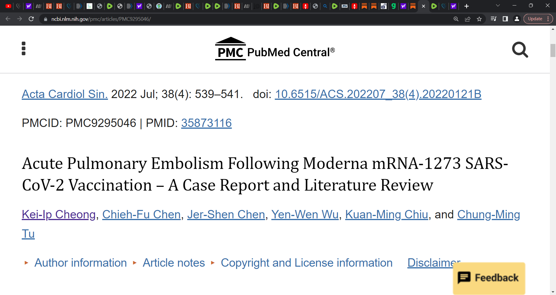 Did Cheong et al. show acute Pulmonary Embolism (lung clotting) following the mRNA technology based (underpinning) Kariko, Weissman et al. Moderna mRNA-1273 COVID gene injection vaccine? Yes! 100%