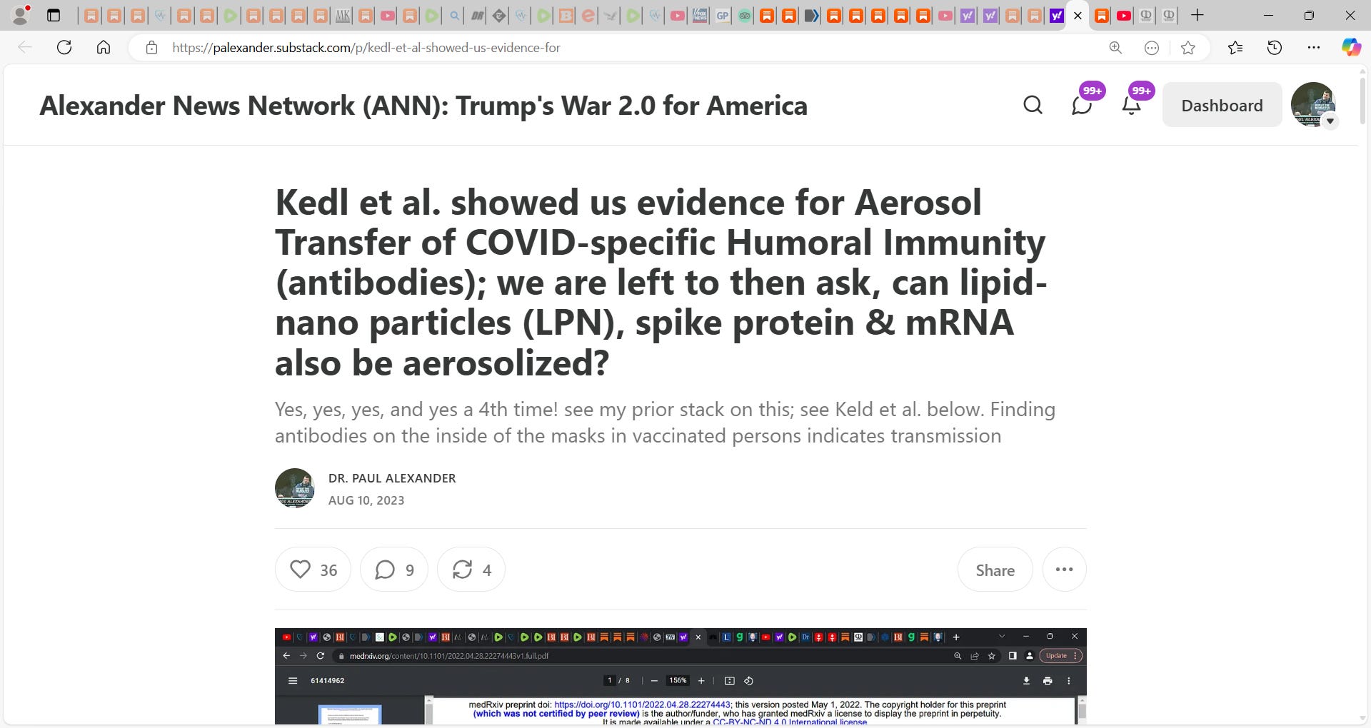 Kedl et al. showed us evidence for Aerosol Transfer of COVID-specific Humoral Immunity (antibodies); we are left to then ask, can lipid-nano particles (LPN), spike protein & mRNA also be aerosolized? As such, shed?