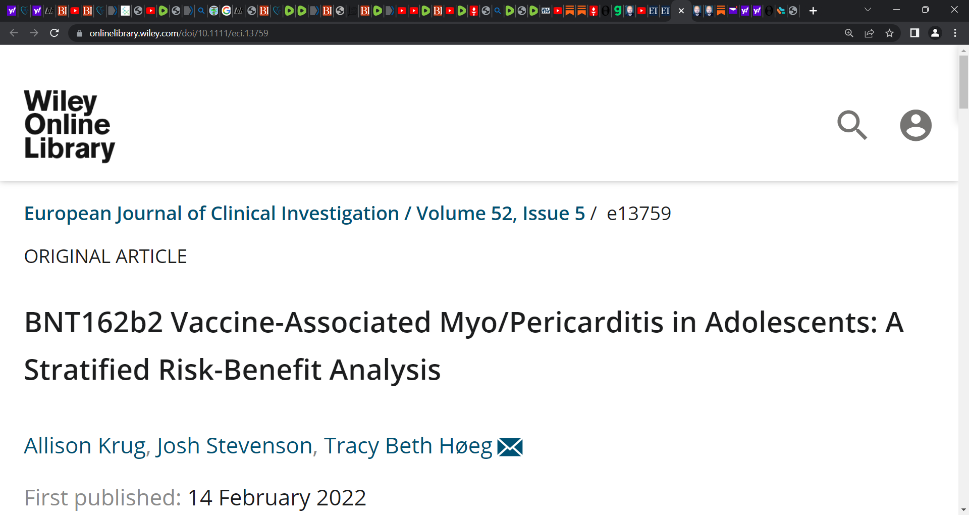 Did Krug et al. find Pfizer Vaccine-Associated Myocarditis/Pericarditis in Adolescents using a Stratified Risk-Benefit Analysis? Yes, overwhelmingly in n=253 persons aged 12-17 years