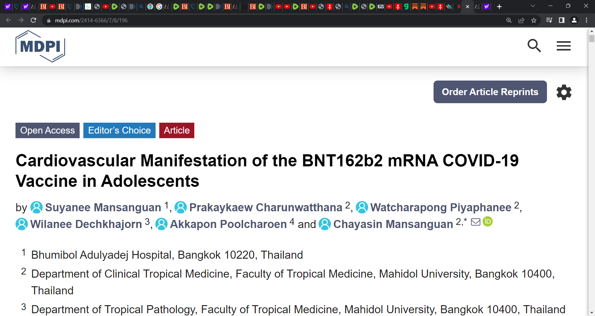 Did Mansanguan et al.' Thai adolescent study report on Cardiovascular Manifestation of Pfizer BNT162b2 mRNA technology based gene COVID Vaccine (Malone, Kariko, Weissman mRNA technology)? Yes! 100%