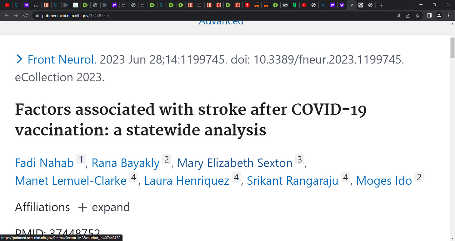 Did Nahab et al. reveal factors linked with stroke following COVID gene injection vaccine? Yes! Concurrent COVID-19 infection had the strongest association with early ischemic and hemorrhagic stroke