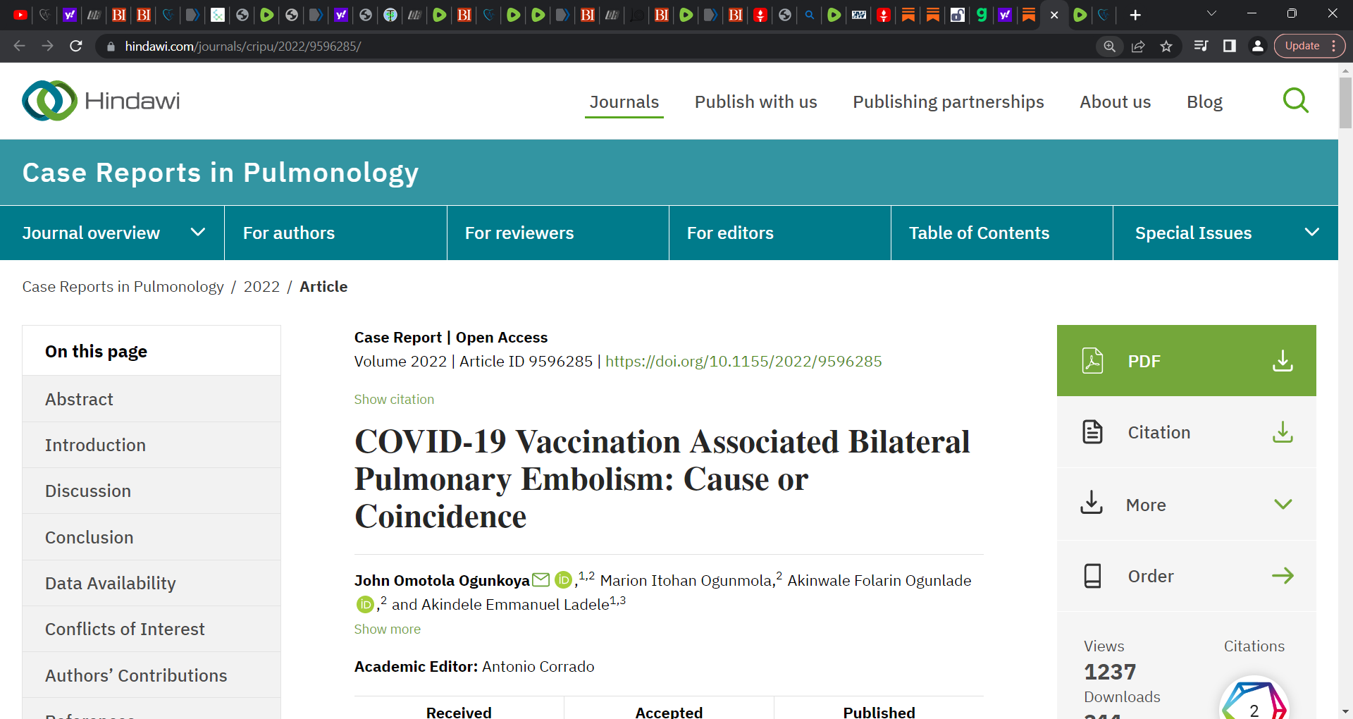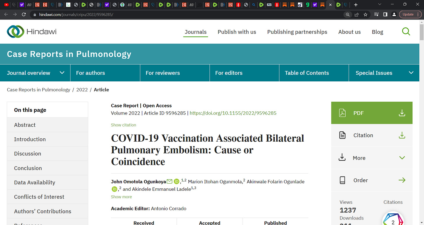 Did Omotola Ogunkoya et al. show us COVID mRNA technology based (Pfizer and Moderna) Vaccination Associated Bilateral Pulmonary Embolism (clots)? Yes! patient had the booster dose of moderna mRNA