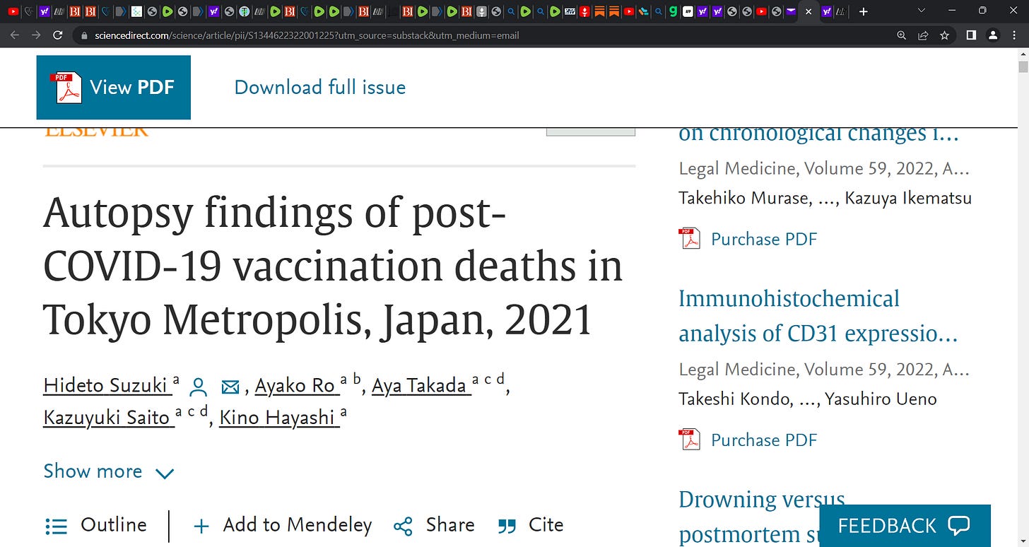 Did recent Tokyo study (Suzuki) of autopsies (cases in which deaths occurred within seven days after COVID mRNA vaccination in Tokyo, n=54) show an association between mRNA technology shots & deaths?