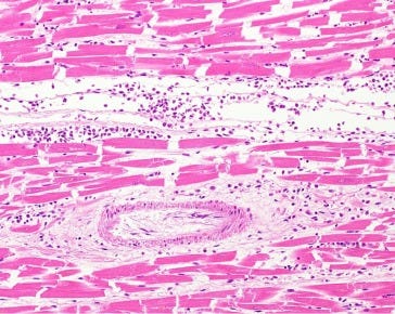 ‘In the assessment of adverse events, myocarditis was found to be the cause of death in two cases (cases 40, 54) (Fig. 1,Fig. 2.), and causal relationships to vaccination were possible. Another case showed myocarditis (case 4) while a competing cause of death (pre-existing ischemic heart disease) was found.