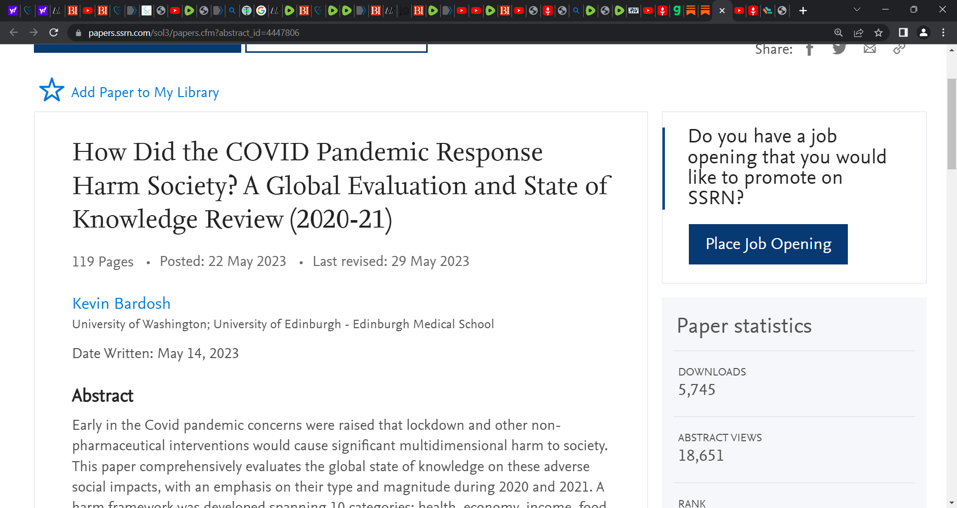 Did the COVID Pandemic Response Harm Society? Devastatingly so! Reponse (lockdown lunacy) by both Trump & Biden administration harmed Americans; Global Evaluation & State of Knowledge Review (Bardosh)