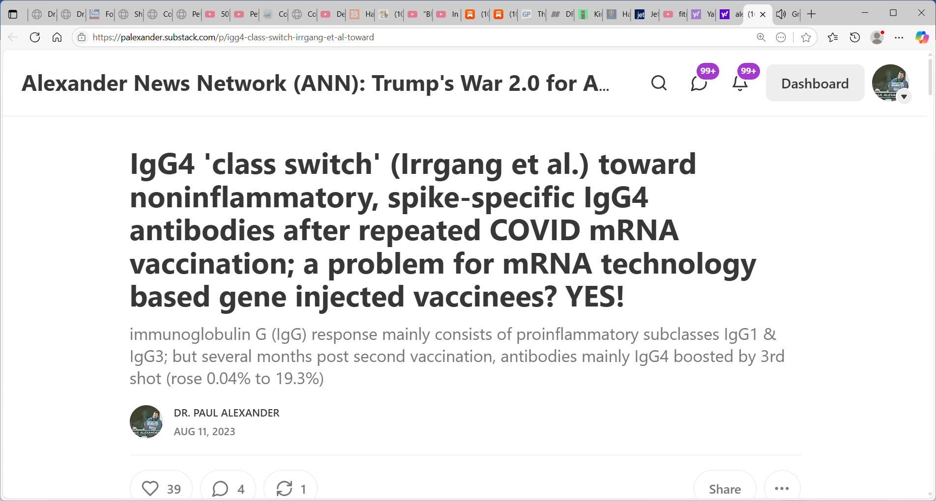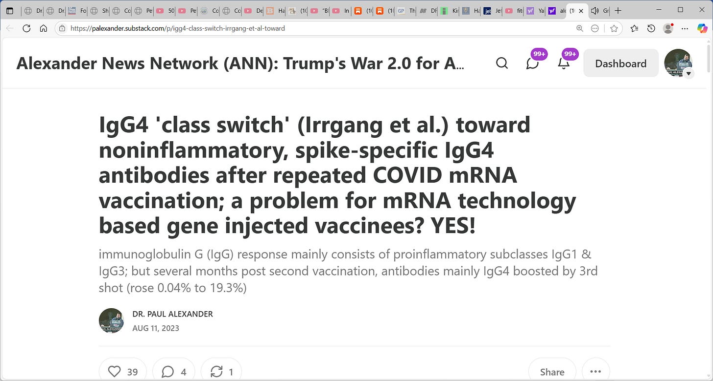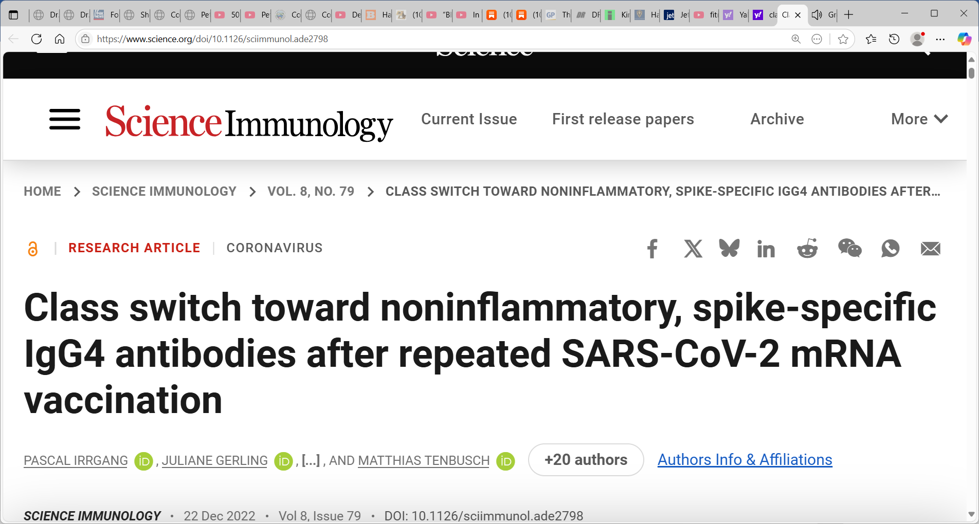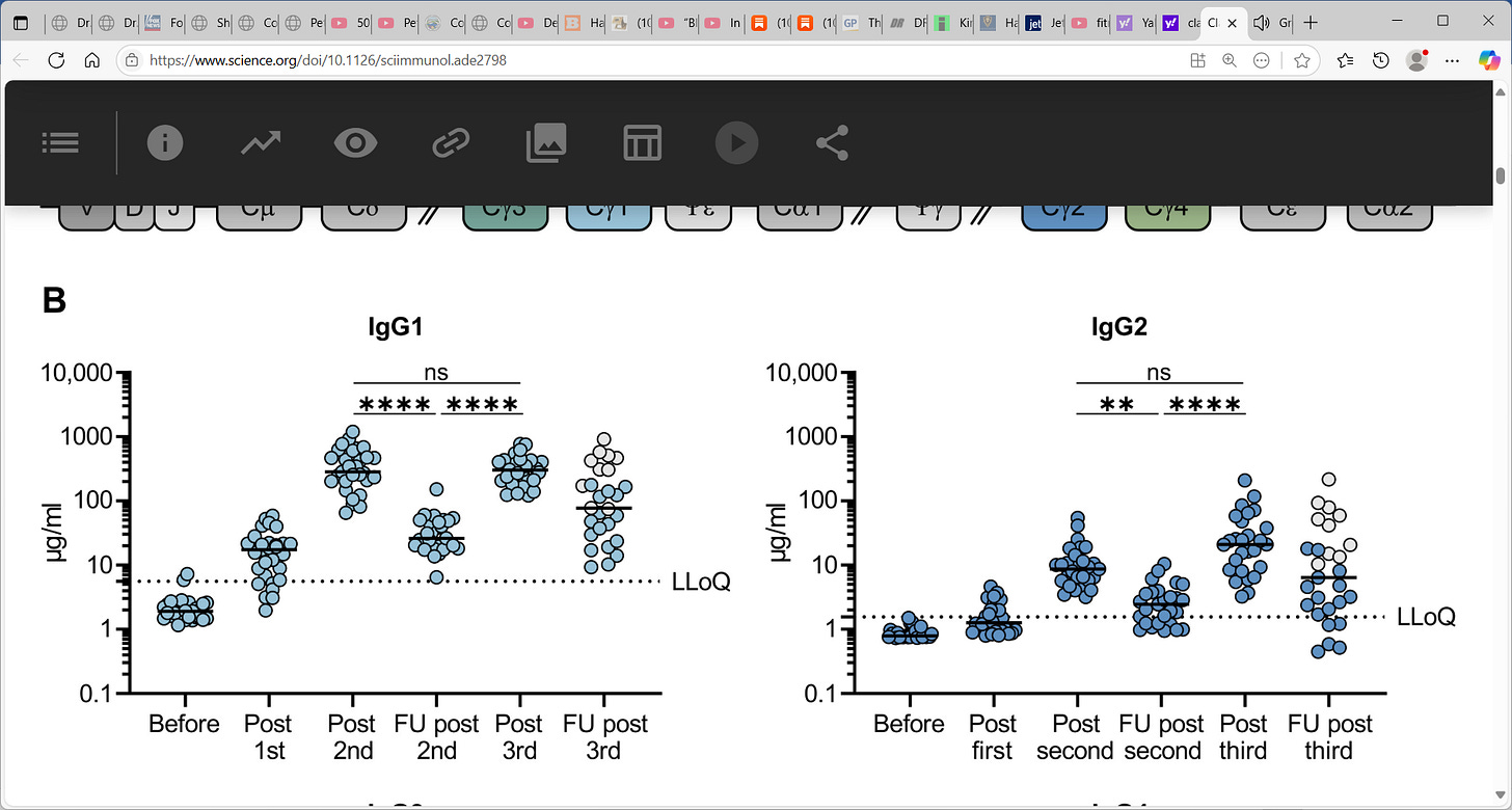 Irrgang et al. told us that with repeated BOOSTER mRNA shots, in 2022, that there was a class-switch towards the IgG4 antibodies and I wrote about this prior; they conducted ‘a longitudinal analysis of the level of spike-specific antibodies from each IgG subclass in recipients of the SARS-CoV-2 BNT162b2 mRNA vaccine (Pfizer).