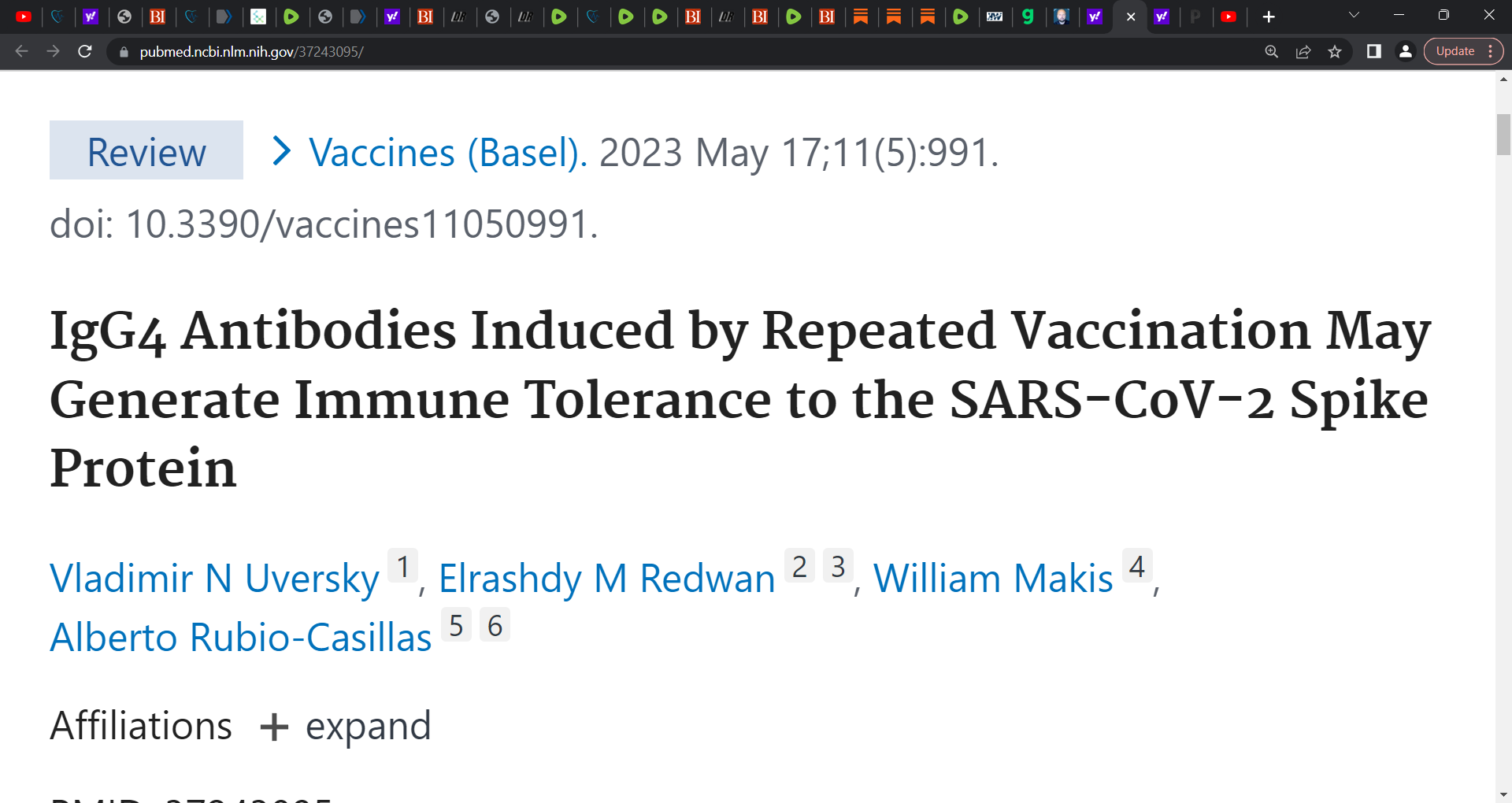 Did Uversky reveal catastrophic immune 'TOLERANCE' class switch to IgG4 Antibodies? Yes! 'IgG4 Antibodies Induced by Repeated Vaccination May Generate Immune Tolerance to the SARS-CoV-2 Spike Protein'