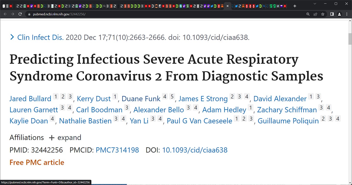 were NOT positive for infectious, pathological, culturable, viable virus that could transmit!!! near 100%! thus ASYMPTOMATIC transmission was DOA & I have said this, as has Bridle & McCullough; 99.9%