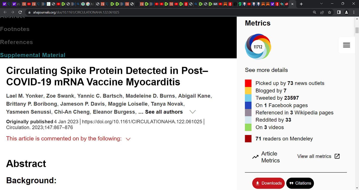Did Yonker at el. find circulating spike protein in persons (adolescents and young adults) COVID vaccinated (mRNA technology based gene injection) who presented with myocarditis? Yes, certainly did!