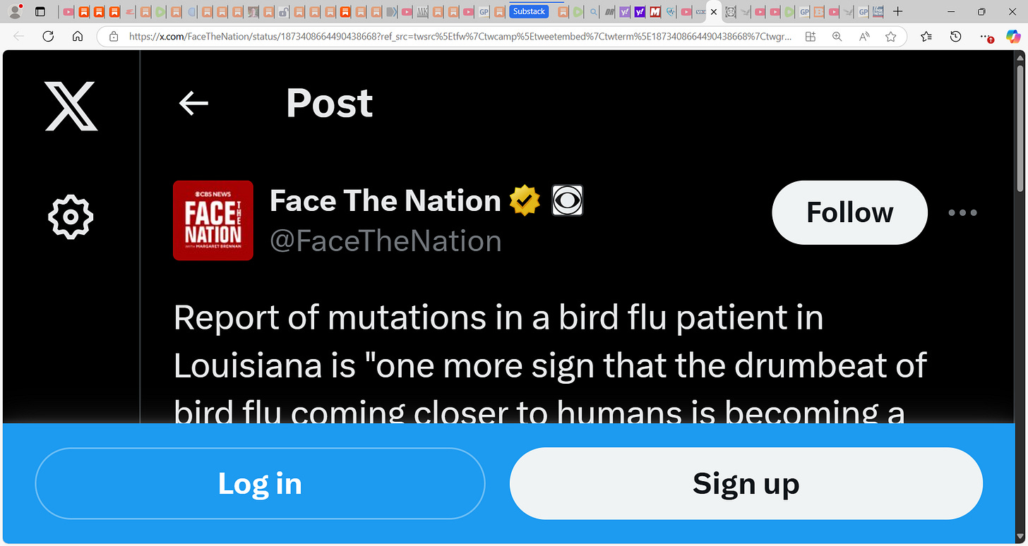 This nutjob is calling on Biden to bring a bird flu mRNA vaccine now, urgently, before he leaves office in case Trump will not bring one. Can you imagine that?