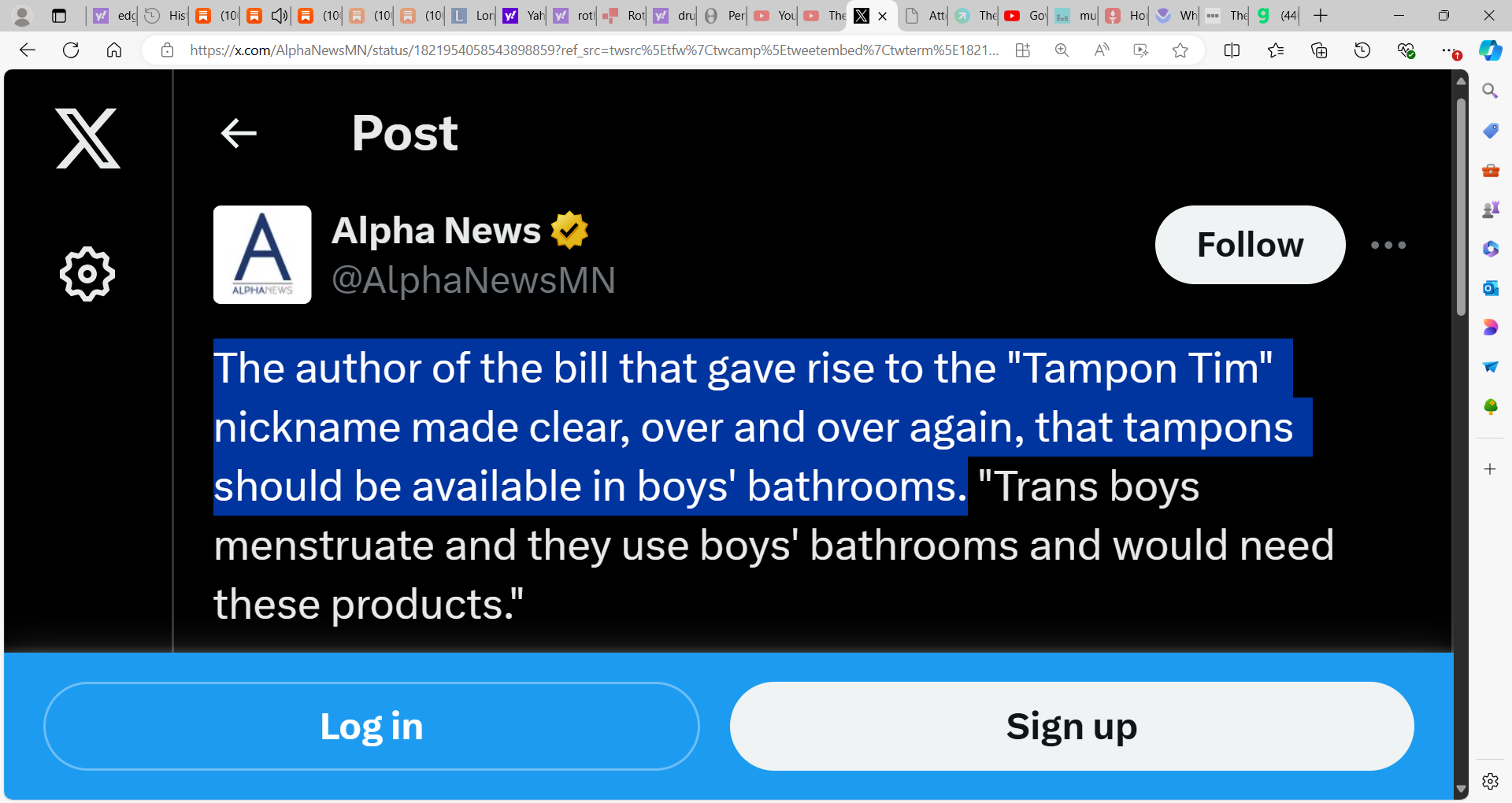 Listen to these psychotic psycopaths in a Minnesota legislative session arguing that boys need tampons in school and Tampon Tim Walz was the biggest proponent: