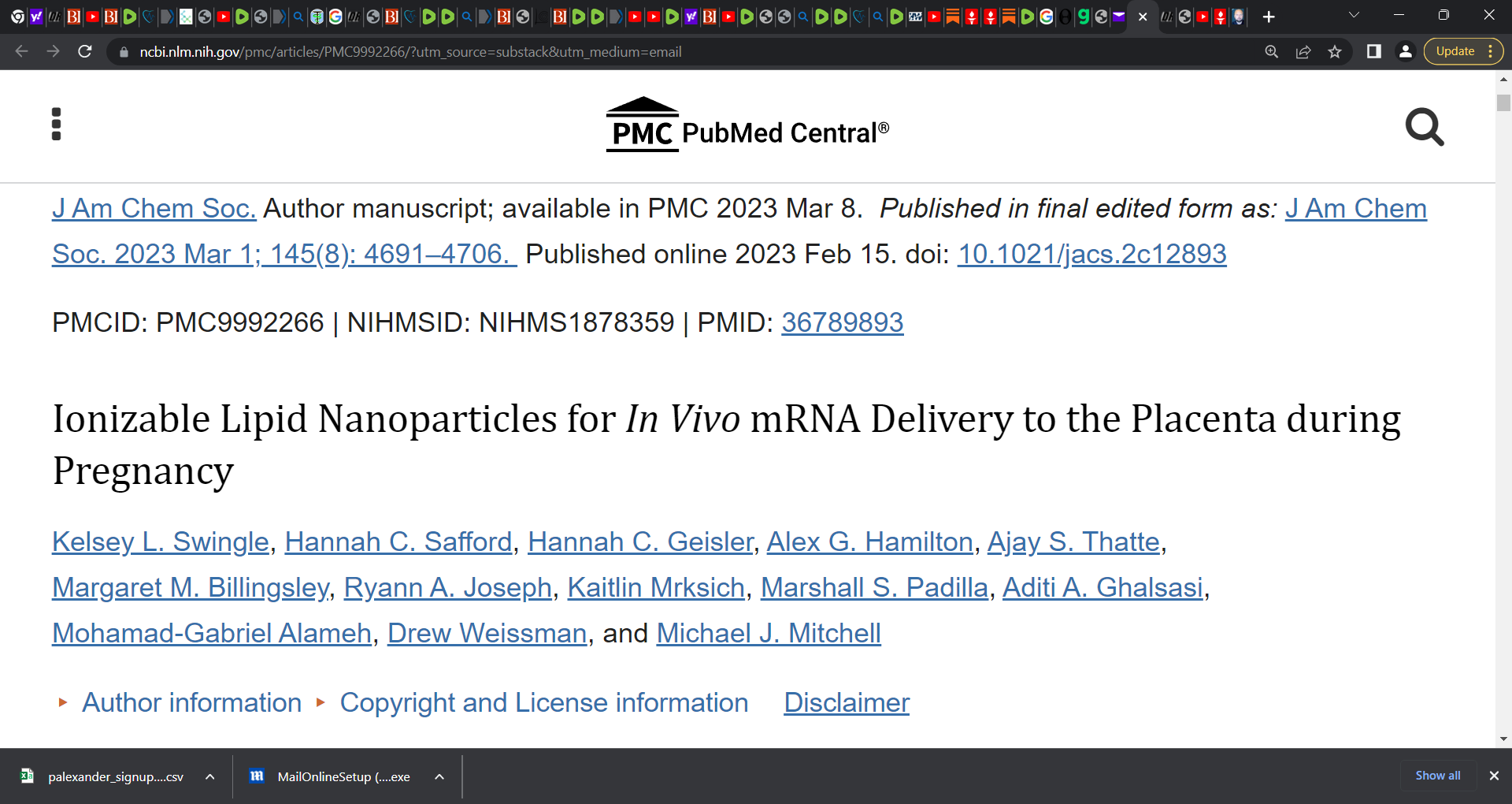 ‘LNPs enhance mRNA stability, circulation time, cellular uptake, and preferential delivery to specific tissues compared to mRNA with no carrier platform. However, LNPs have yet to be developed for safe and effective mRNA delivery to the placenta as a method to treat placental dysfunction. Here, we develop LNPs that enable high levels of mRNA delivery to trophoblasts in vitro and to the placenta in vivo with no toxicity.’