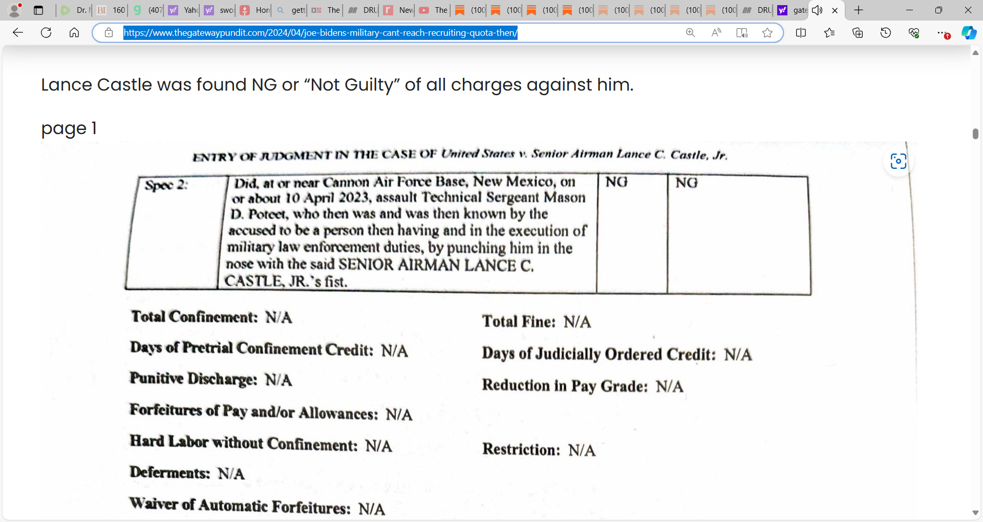 Lance Castle was found NG or “Not Guilty” of all charges against him.