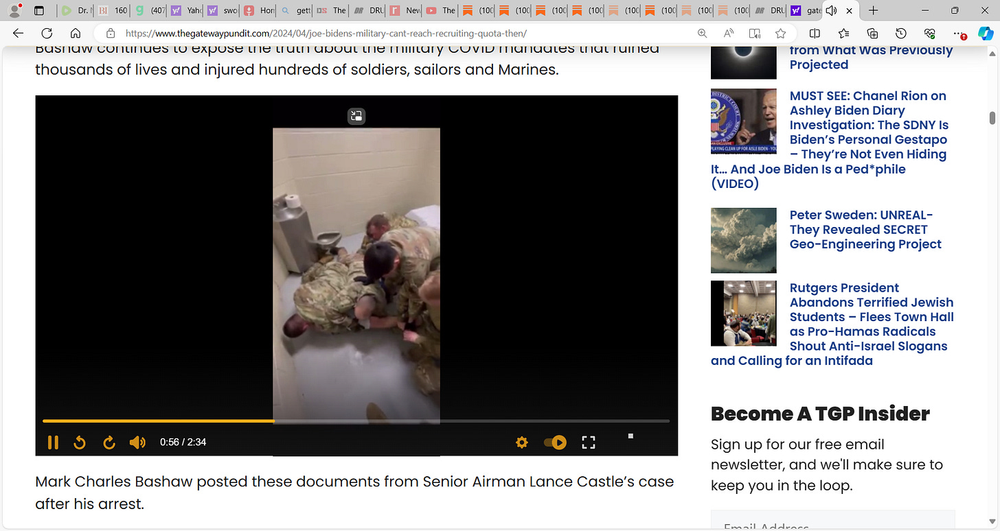 The video shows the military’s treatment of USAF Senior Airman Lance Castle, a service member who refused the mandatory CV-19 vaccine.