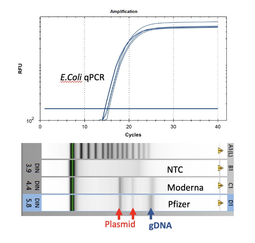 Preamble- Follow on estimations of DNA/RNA contamination with alternative methods and more lots has reproduced contamination above the EMA limit but are less extreme than 20-35%. Please be certain to read the follow on substacks. These substacks look at Qubit readings and qPCR and found 43:1 - 161:1 Ratio of RNA:DNA in the Pfizer monovalent vaccines. Limitations- All lots evaluated to date are expired and this could lead to faster RNA decay than DNA decay. It is also possible, the Agilent Tape station DNA gels are staining some RNA and inflating the DNA estimates in the below study.