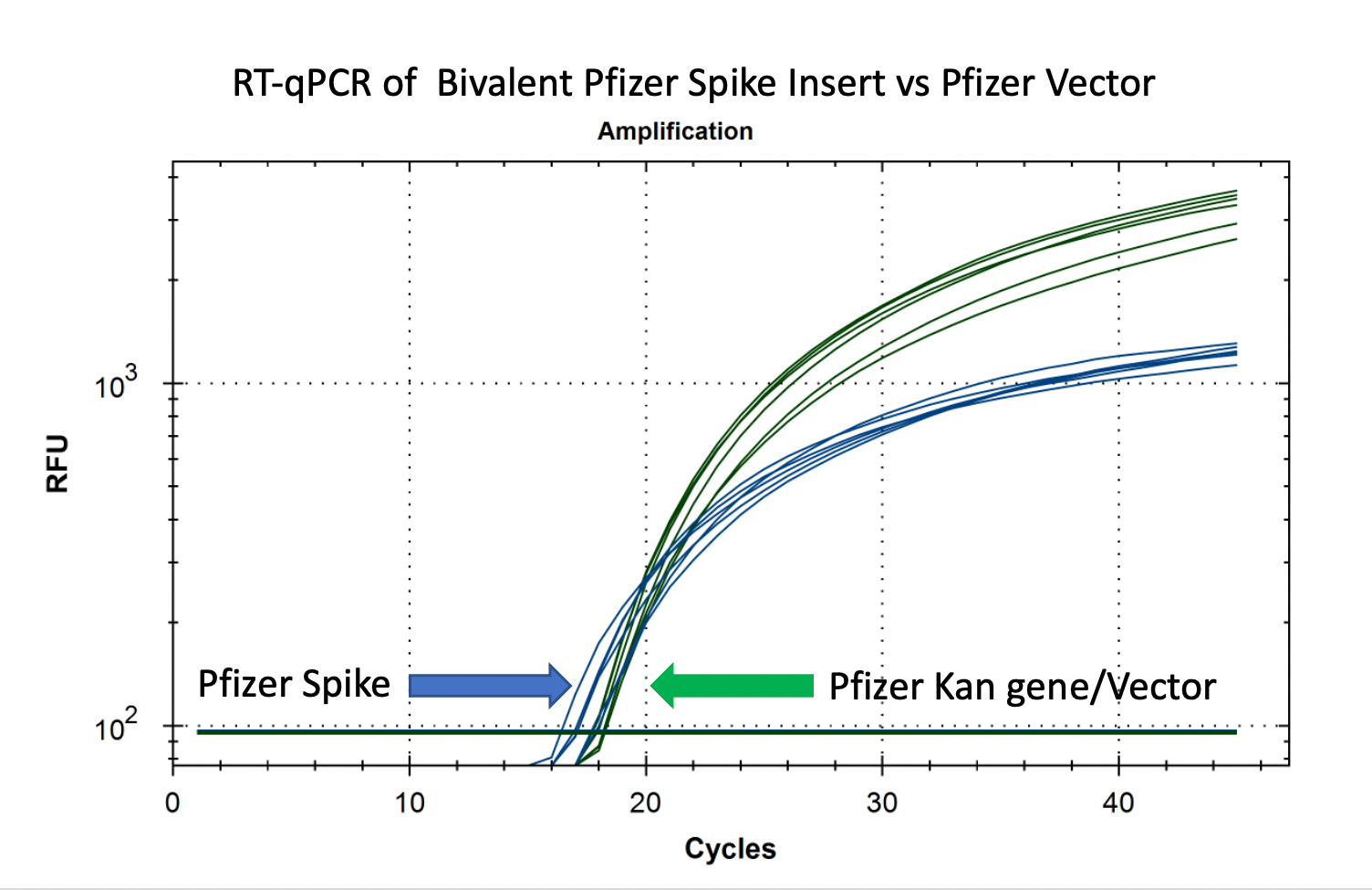 These data are preliminary and further sequencing confirmation will be made publicly available once complete. Quantitative PCR assays are now available for detection of both Moderna and Pfizer monovalent and bivalent mRNA vaccines and their respective contaminating vector DNAs. This assay also detects the Janssen adenovirus spike sequence. These may be helpful for screening blood, semen, serum and other tissues for blood blanks and fertility clinics concerned with vaccine contamination.