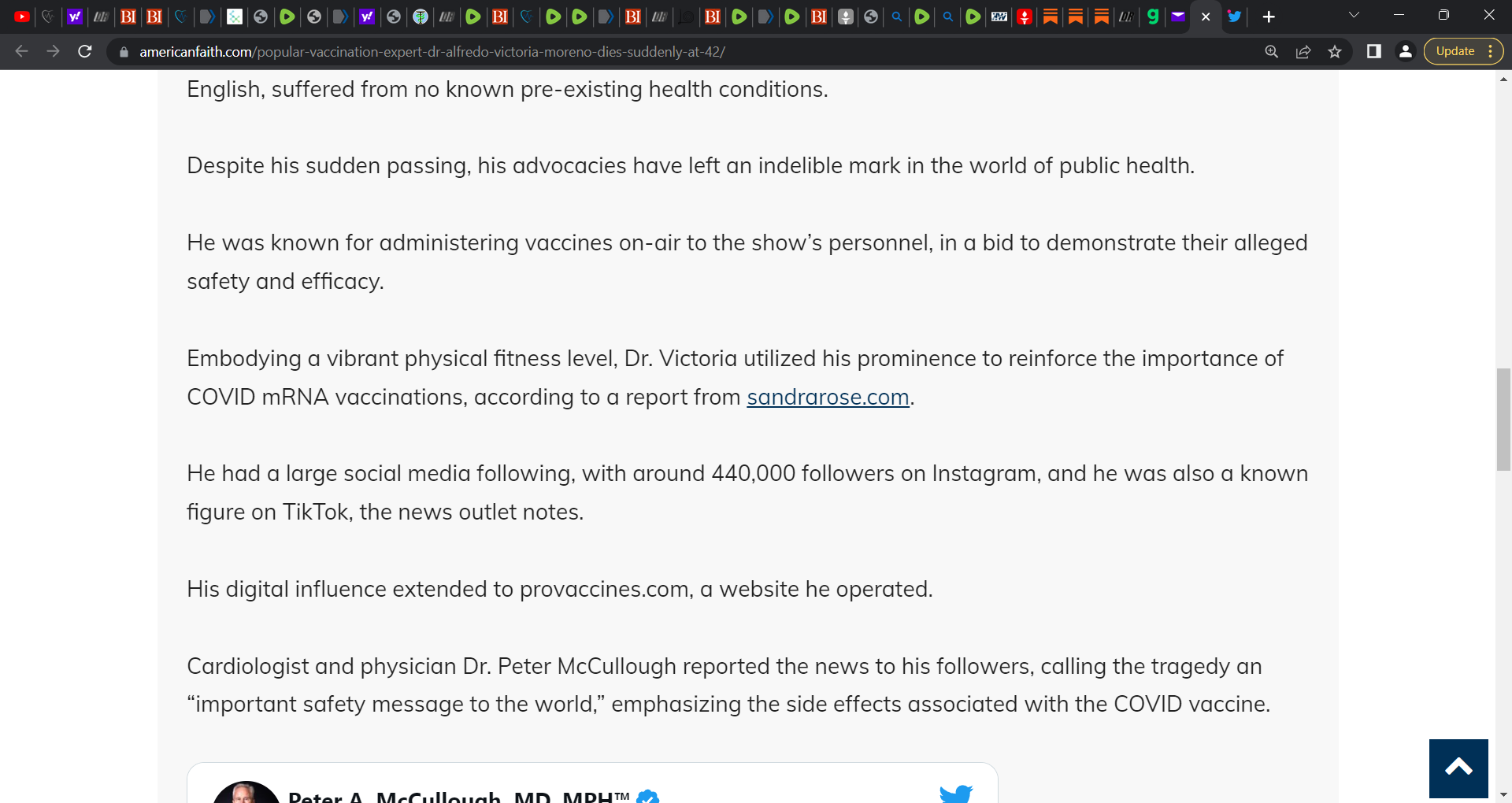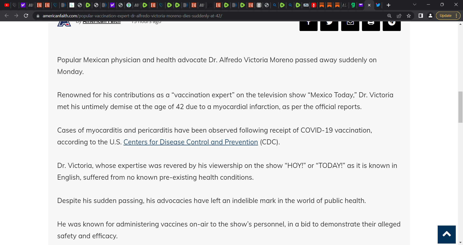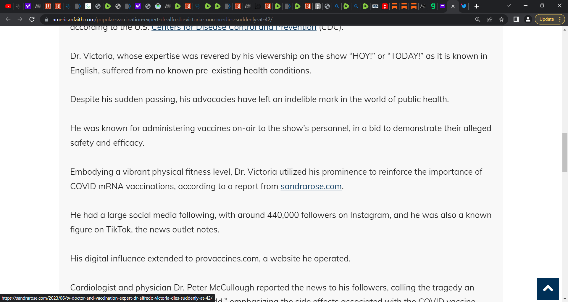 IMO, most likely! Renowned for contributions as a “vaccination expert” Dr. Victoria met his untimely demise at the age of 42 due to a myocardial infarction, no health conditions, gave shots 'on air'