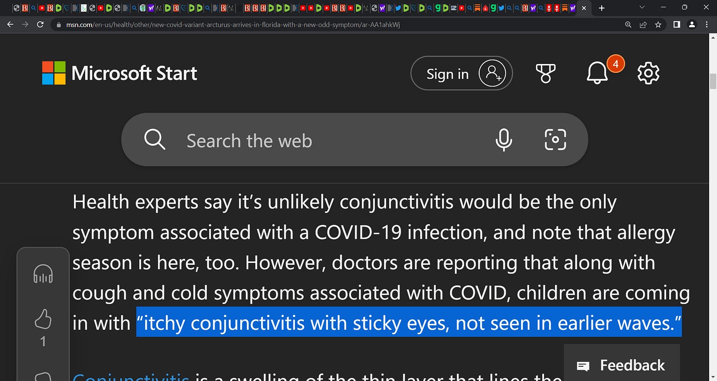 Dr. Ardis spoke on this & I have to cover it now given this news report today "New COVID variant arcturus arrives in Florida — with a new, odd symptom, conjunctivitis, pink itchy eye"; what a load of