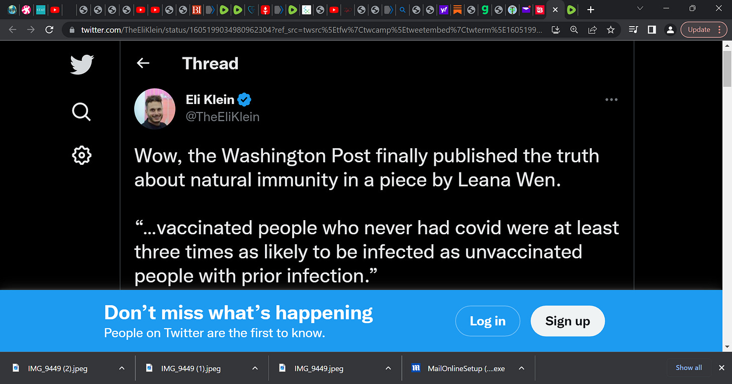 In response to Wen's recent op-eds, New York art dealer Eli Klein expressed his surprise that the "Washington Post finally published the truth about natural immunity."