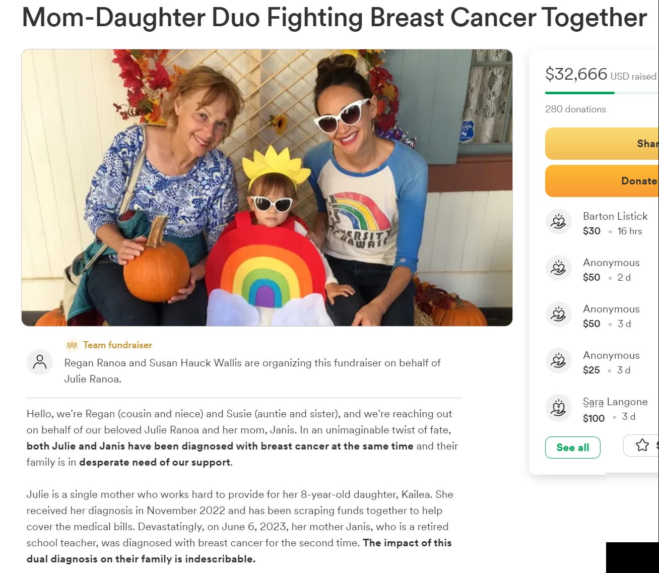 June 6, 2023, Agoura Hills, CA - Julie Ranoa and her mother Janis Ranoa have both been diagnosed with breast cancer at the same time (click here)