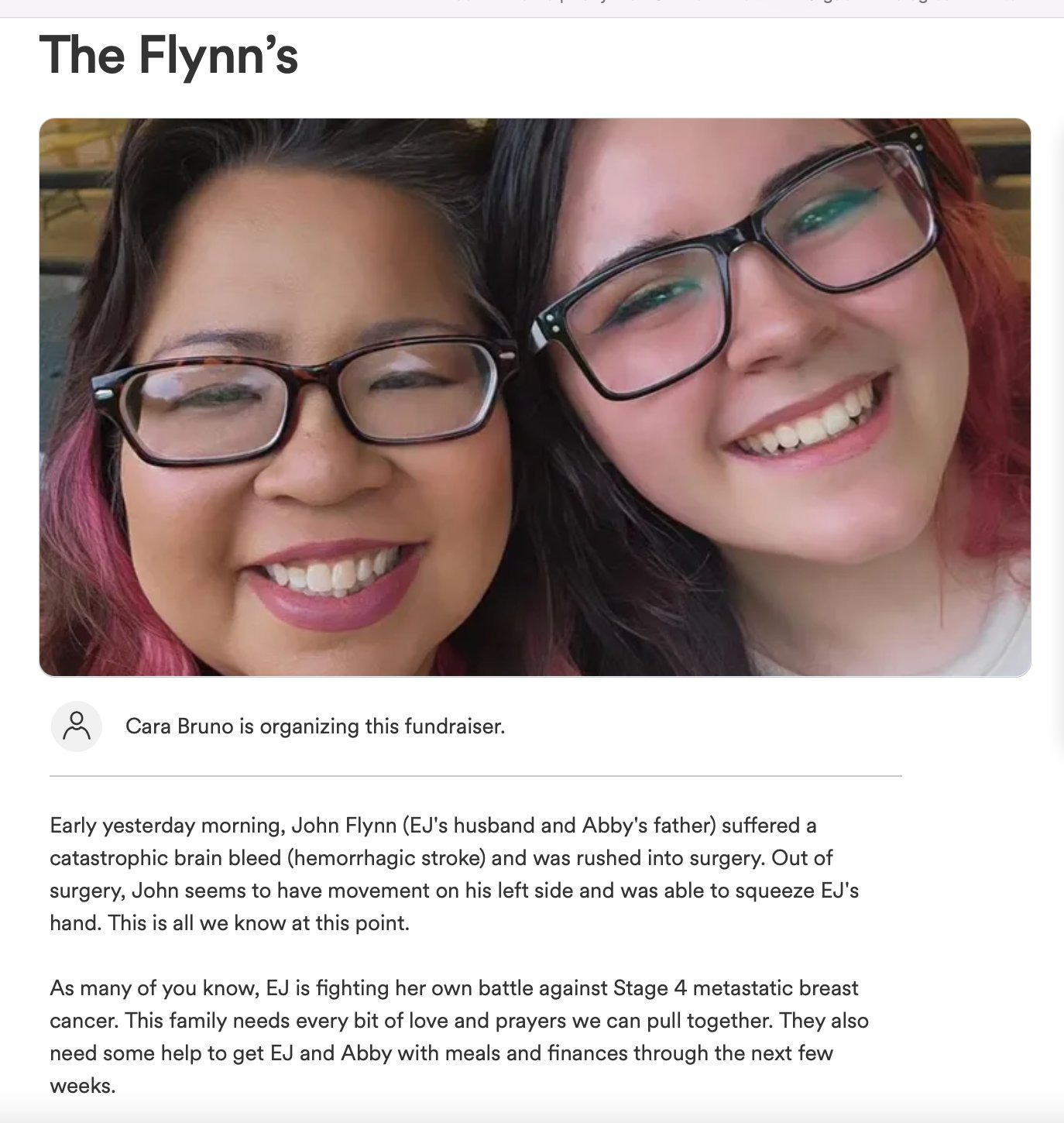 June 8, 2023, Mamaroneck, NY - John Flynn suffered a catastrophic brain bleed while his wife EJ Flynn was diagnosed with Stage 4 metastatic breast cancer (click here)
