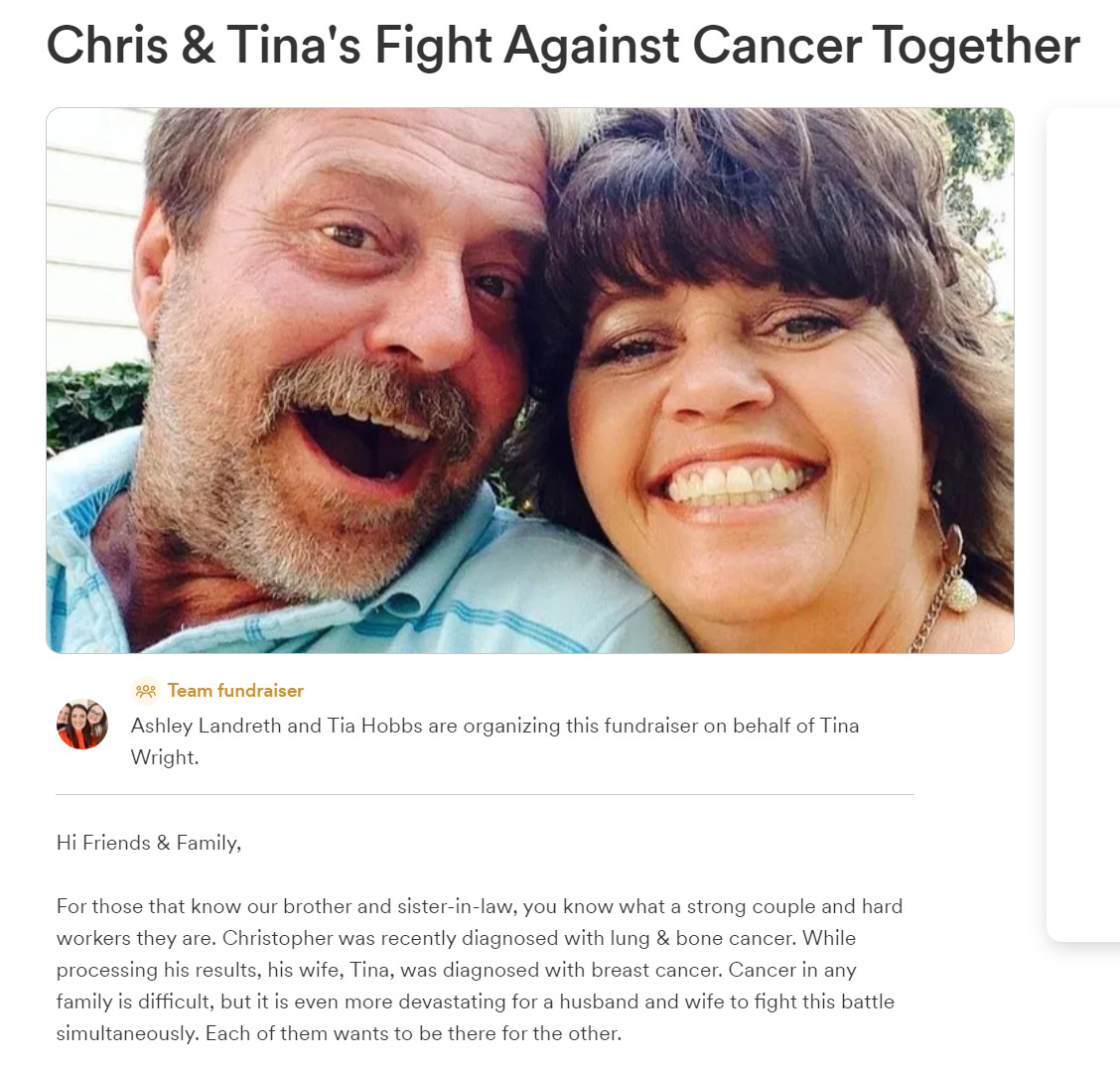 June 24, 2022, Waverly, AL - Husband and wife battle cancer together. Chris was diagnosed with lung & bone cancer while his wife Tina Wright was diagnosed with breast cancer. (click here)