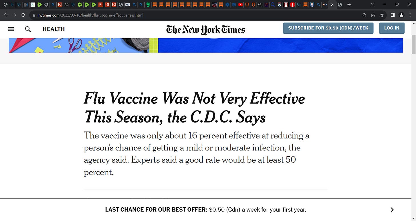 Well, ‘This season’s flu vaccine has offered little to no protection against getting a mild or moderate case of influenza, the Centers for Disease Control and Prevention said this week.
