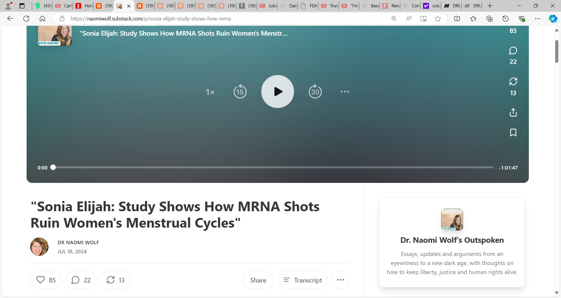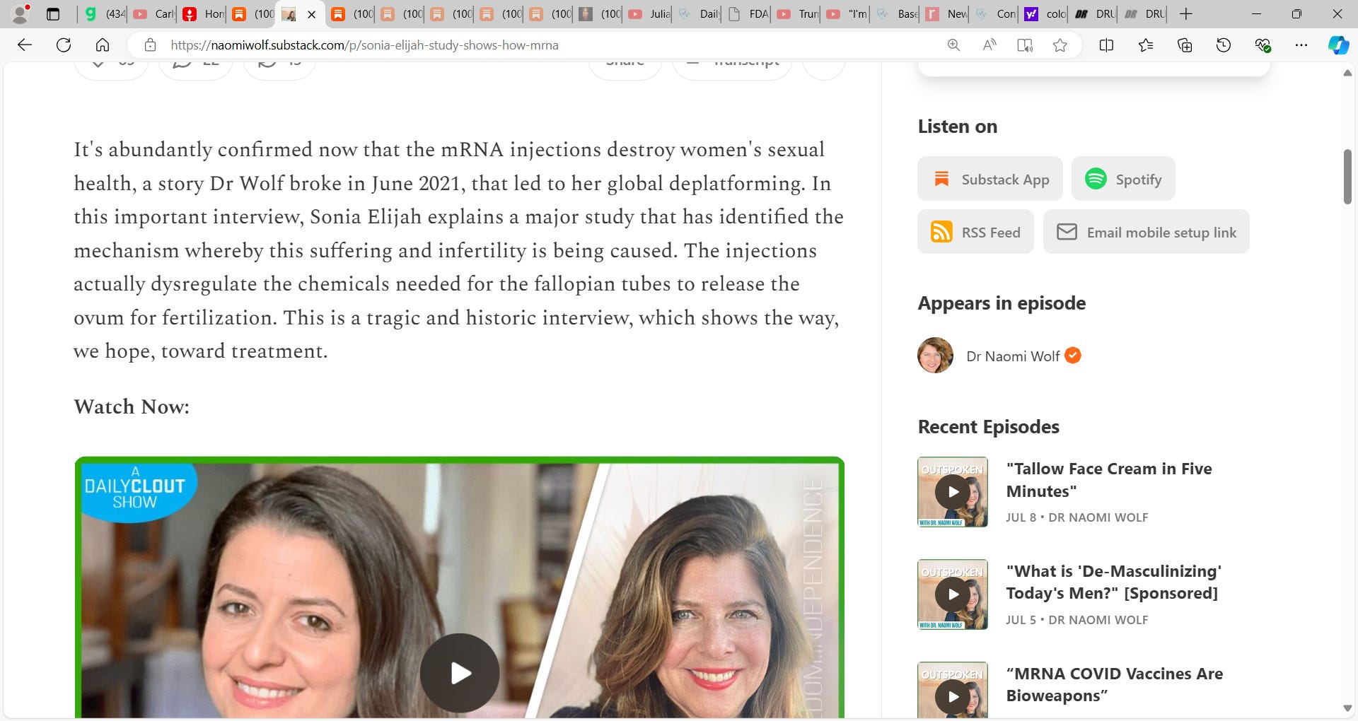 DR NAOMI WOLF & Sonia Elijah conduct a stunning interview on how mRNA technology (lipid nano particles platform) & mRNA vaccine devastates Women's Menstrual Cycles; excellent scholarship; please sup-