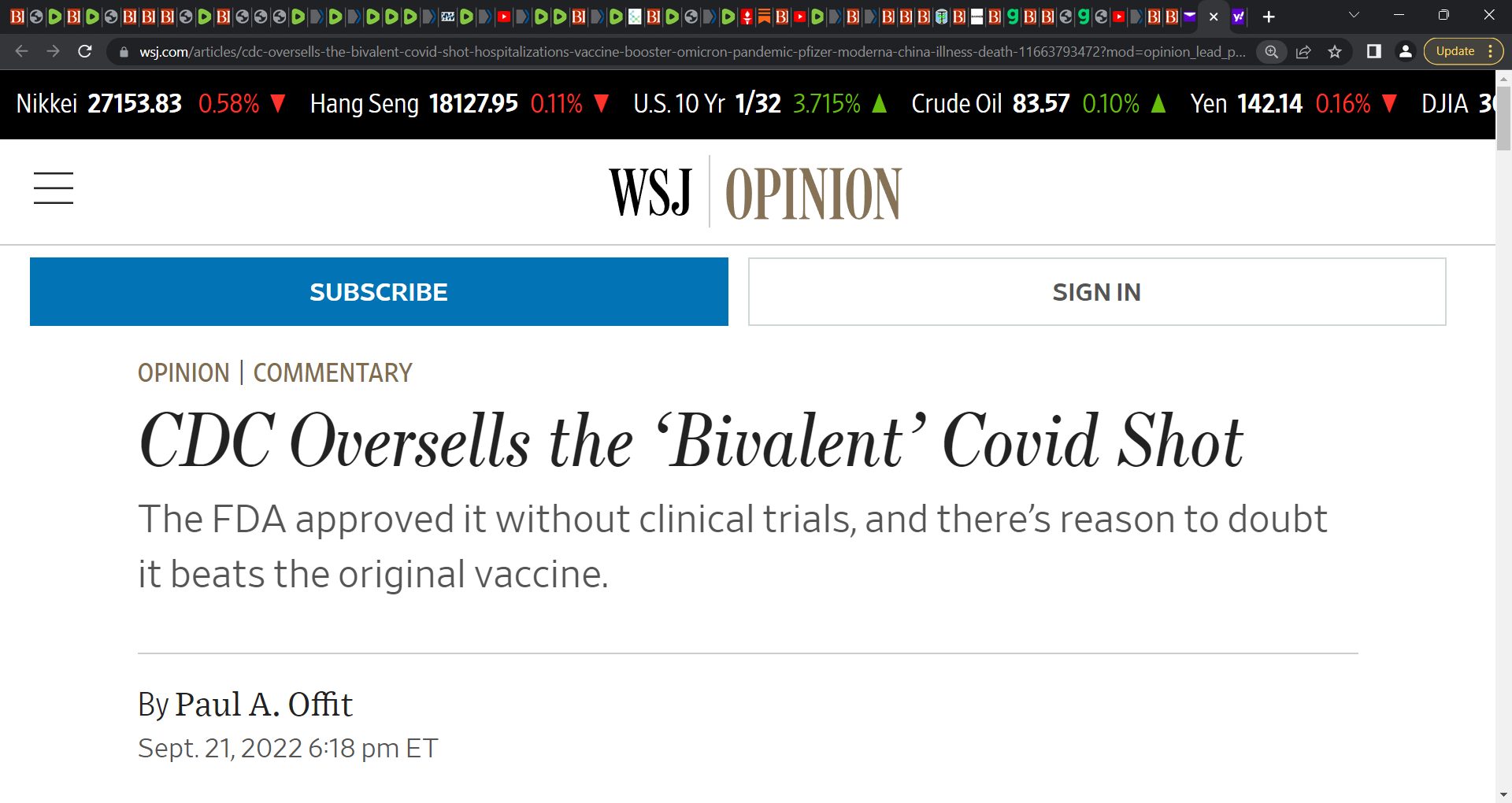 Dr. Paul Offit: CDC Oversells the ‘Bivalent’ Covid Shot; The FDA approved it without clinical trials, and there’s reason to doubt it beats the original vaccine; nice, but I do not trust him