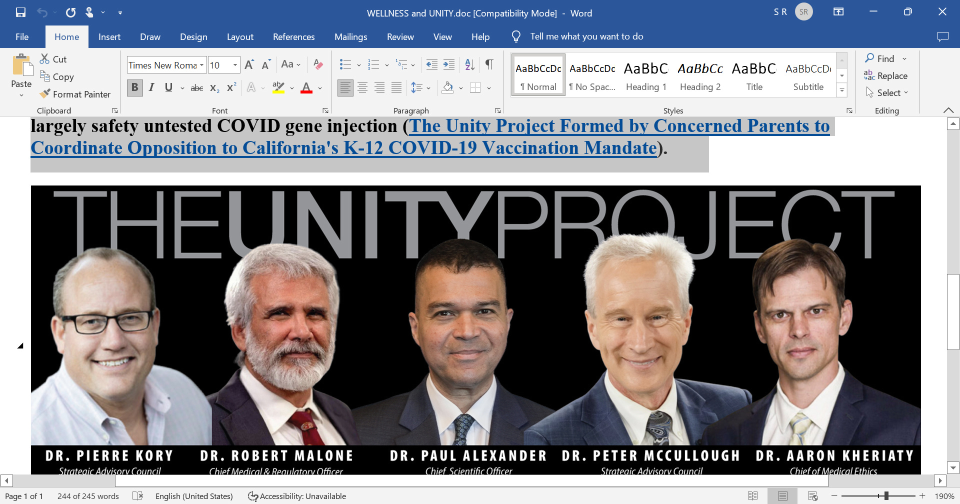 I also provide scientific support to The UNITY Project out of California. I support this tremendous initiative with some fine colleagues who have been warriors in the fight against all the wrongs in COVID. The UNITY Project aligns with my core values for it is very fierce in its fight to protect children from the danger of the largely safety untested COVID gene injection (The Unity Project Formed by Concerned Parents to Coordinate Opposition to California's K-12 COVID-19 Vaccination Mandate).