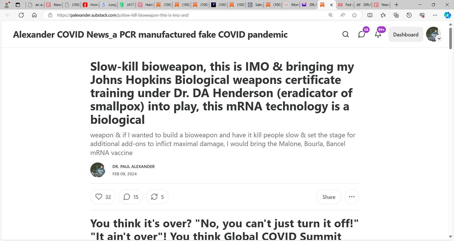not count on how fast the mRNA technology, the mRNA-LNP technology would KILL, I wrote several times it's a SLOW-KILL bioweapon; now Malone's depopulation mRNA vaccines that causes CANCER