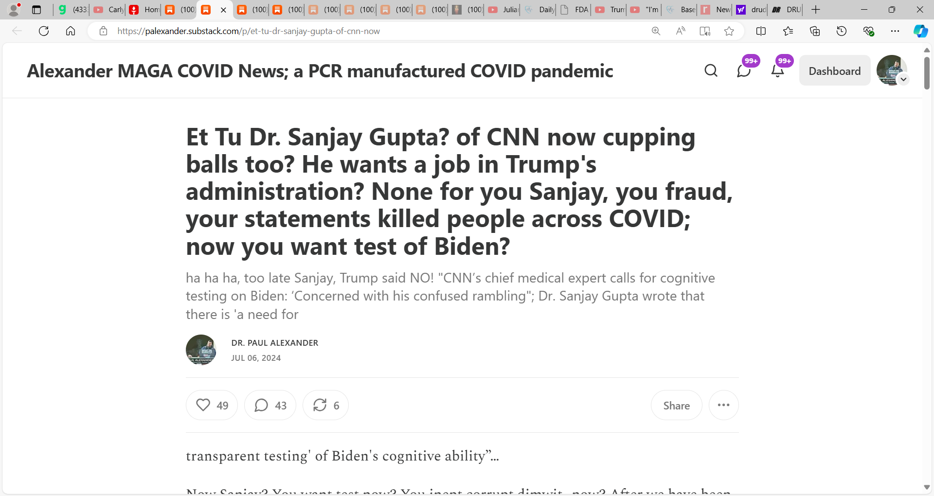 Dr. Sanjay Gupta lied to us, for 4 years, this CNN bitch lied to us for 4 years on CNN, lying, deceiving us, and now Gupta is saying Biden must have a cognitive test? Why? Because the nation SAW it so