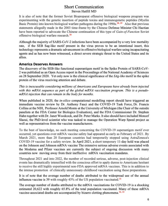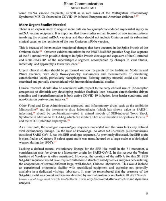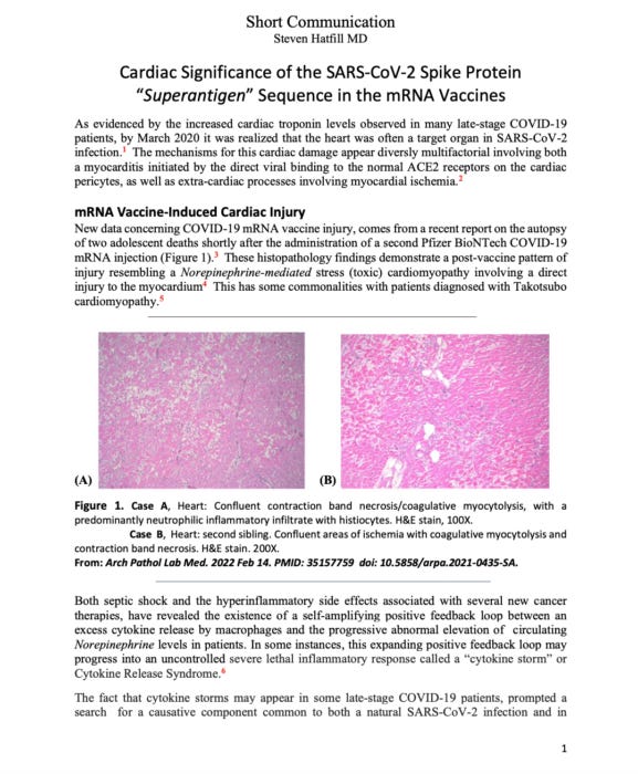 ‘The autopsy of two teens who died after Pfizer's Covid-19 vaccine prompted an analysis by Dr. Steven Hatfill: "Cardiac Significance of the SARS-CoV-2 Spike Protein 'Superantigen' Sequence in the mRNA Vaccines." Dr. Hatfill says the cases reveal the need for "urgent" studies.