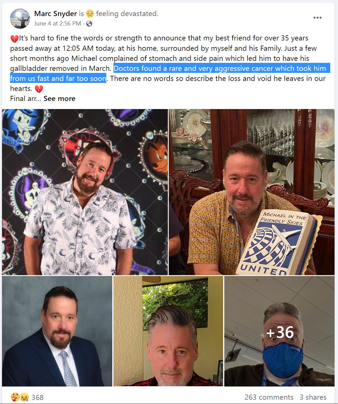 Parma, OH - 61 yo Michael Jones was a United Airlines flight attendant who died on June 3, 2023 from turbo gallbladder cancer he battled for 3 months