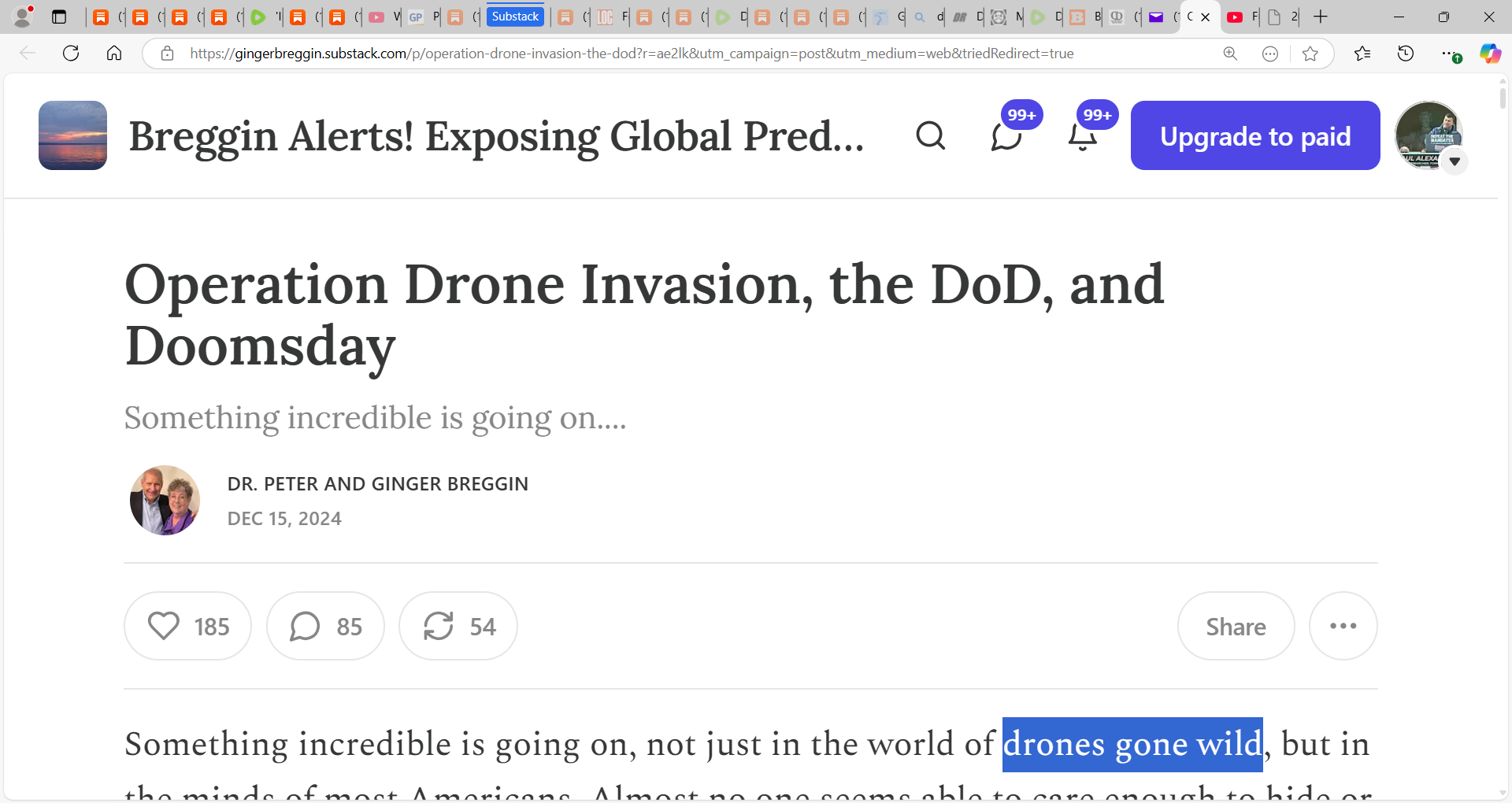 Drones gone wild? What is going on? Dr. Peter Breggin & Ginger Breggin posts up a very interesting paper "Operation Drone Invasion, the DoD, and Doomsday"