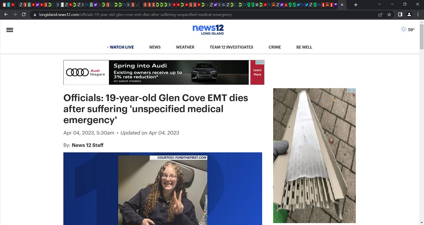 Harmed by the mRNA technology? Yes they are! 'Officials: 19-year-old Glen Cove EMT dies after suffering 'unspecified medical emergency'; should we ask if due to mRNA technology based gene injection?
