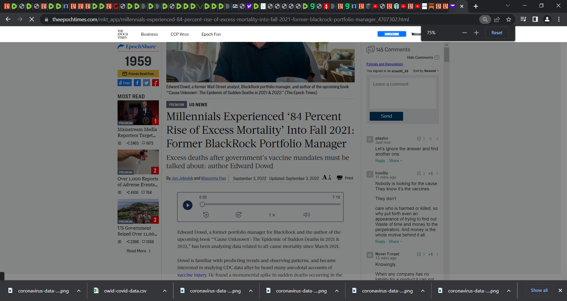 “Edward Dowd, a former portfolio manager for BlackRock and the author of the upcoming book “’Cause Unknown’: The Epidemic of Sudden Deaths in 2021 & 2022,” has been analyzing data related to all-cause mortality since March 2021.