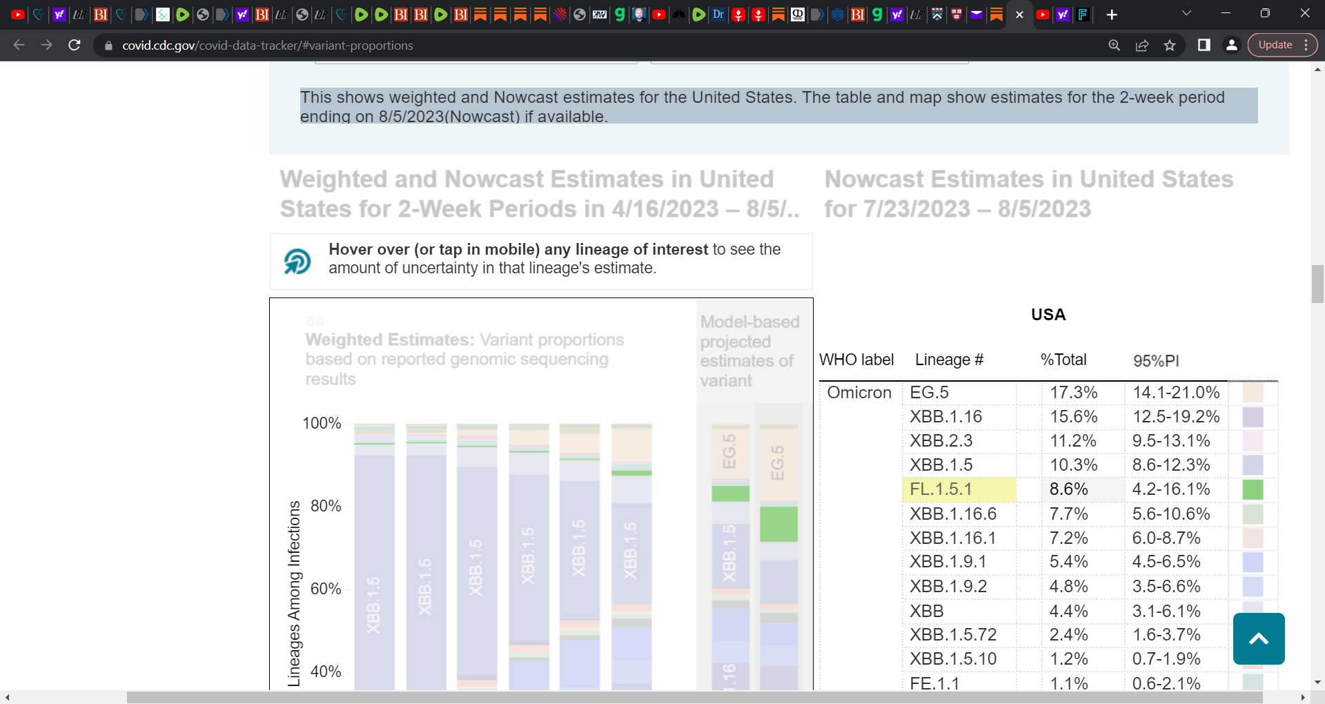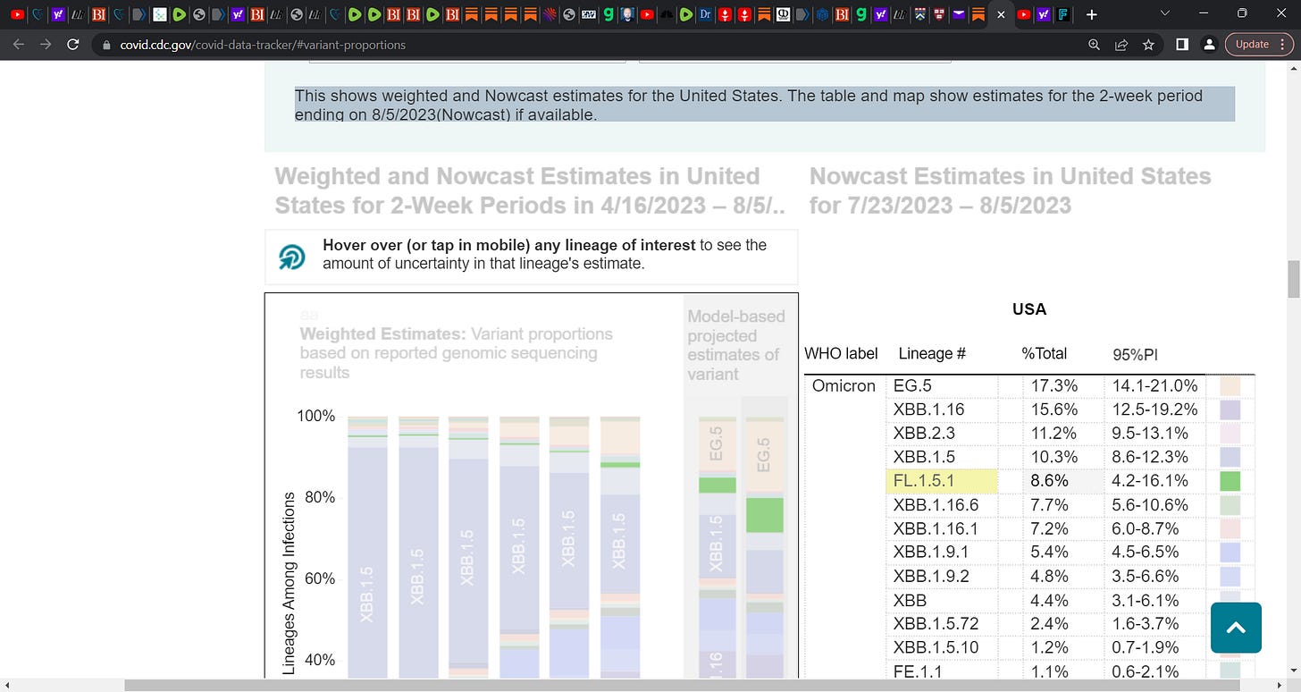 Makes huge sense to me, as it is not just the proportion or largest share in the CDC chart below, but how fast it or others are increasing and good money seems to be on FL.1.5.1 clade to be dominant in about 3-4 weeks. Bottom line is that the boosters (XBB.1.5) will be out of date, useless, DOA, by the fall and when EG.5 is set to dominate or as we argu…